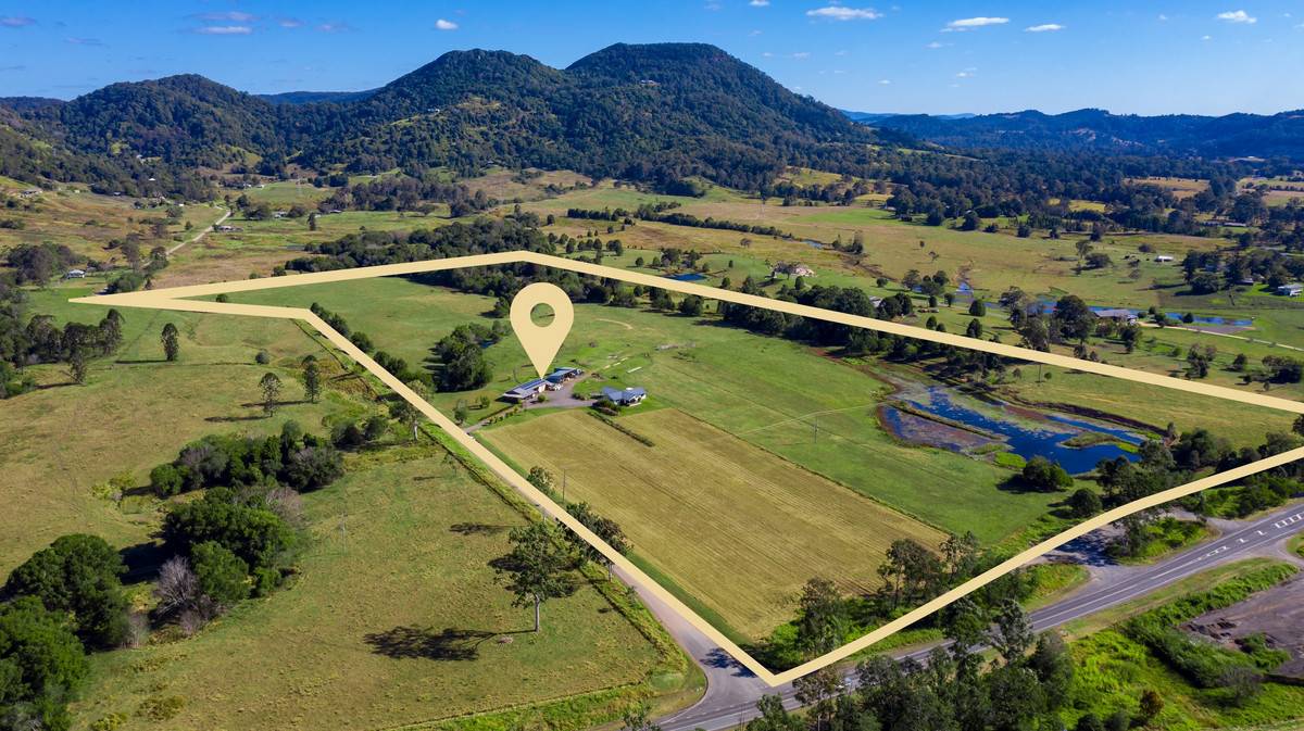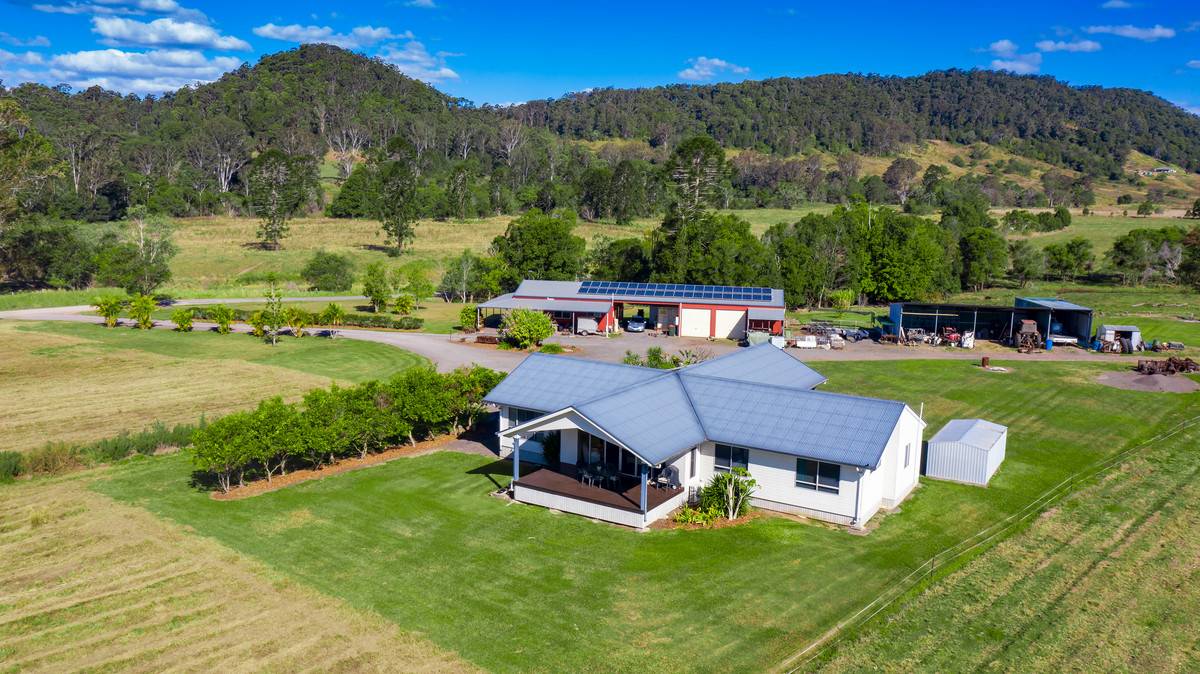 With spectacular views over Cooroy Mountain to one side and Mount Eerwah to the other, the property comprises level fenced paddocks and three dams perfect for horses or livestock.