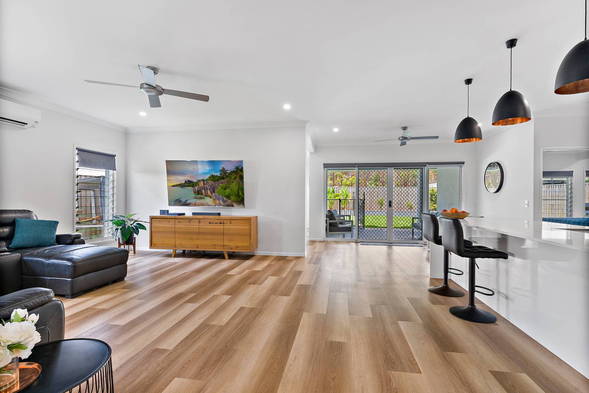 * Open plan kitchen, dining and living space opening onto outdoor entertaining and stunning pool