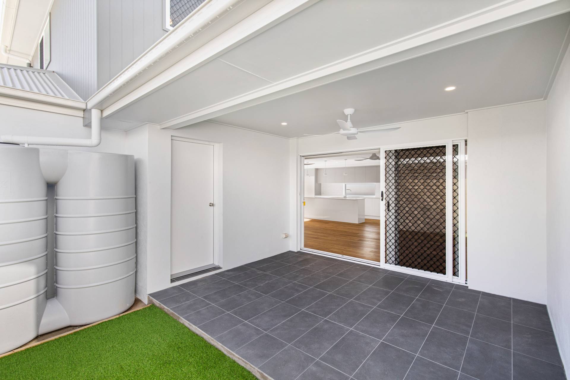 Covered alfresco entertaining space overlooking artificially grassed courtyard