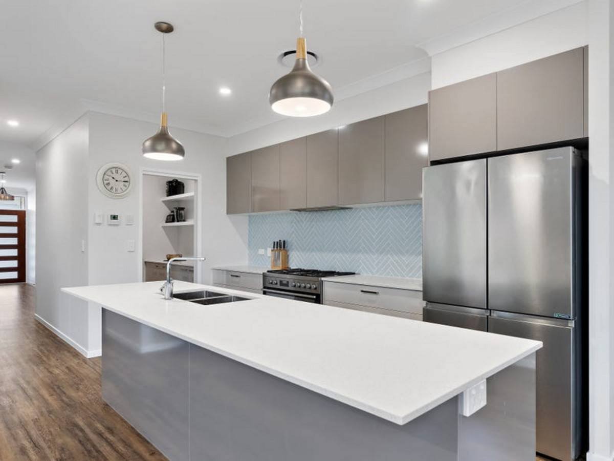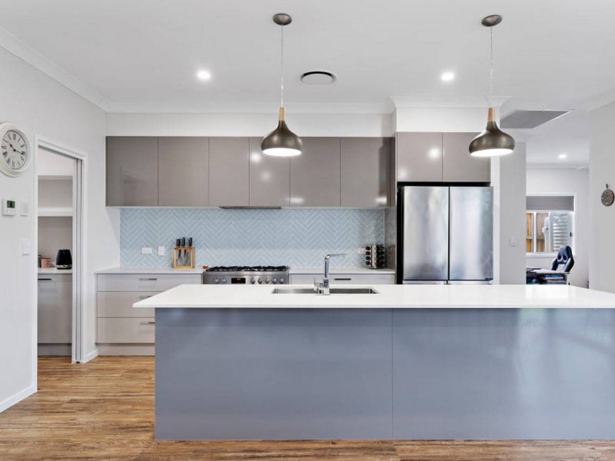 The gourmet kitchen is an entertainer's dream! With modern appliances, large island bench, pendant lighting, and a walk-in butler's pantry with continued stone beach tops, there is no luxury spared! The herringbone, duck egg splash back finishes this delightful culinary space and connects perfectly with the dining room feature wall.