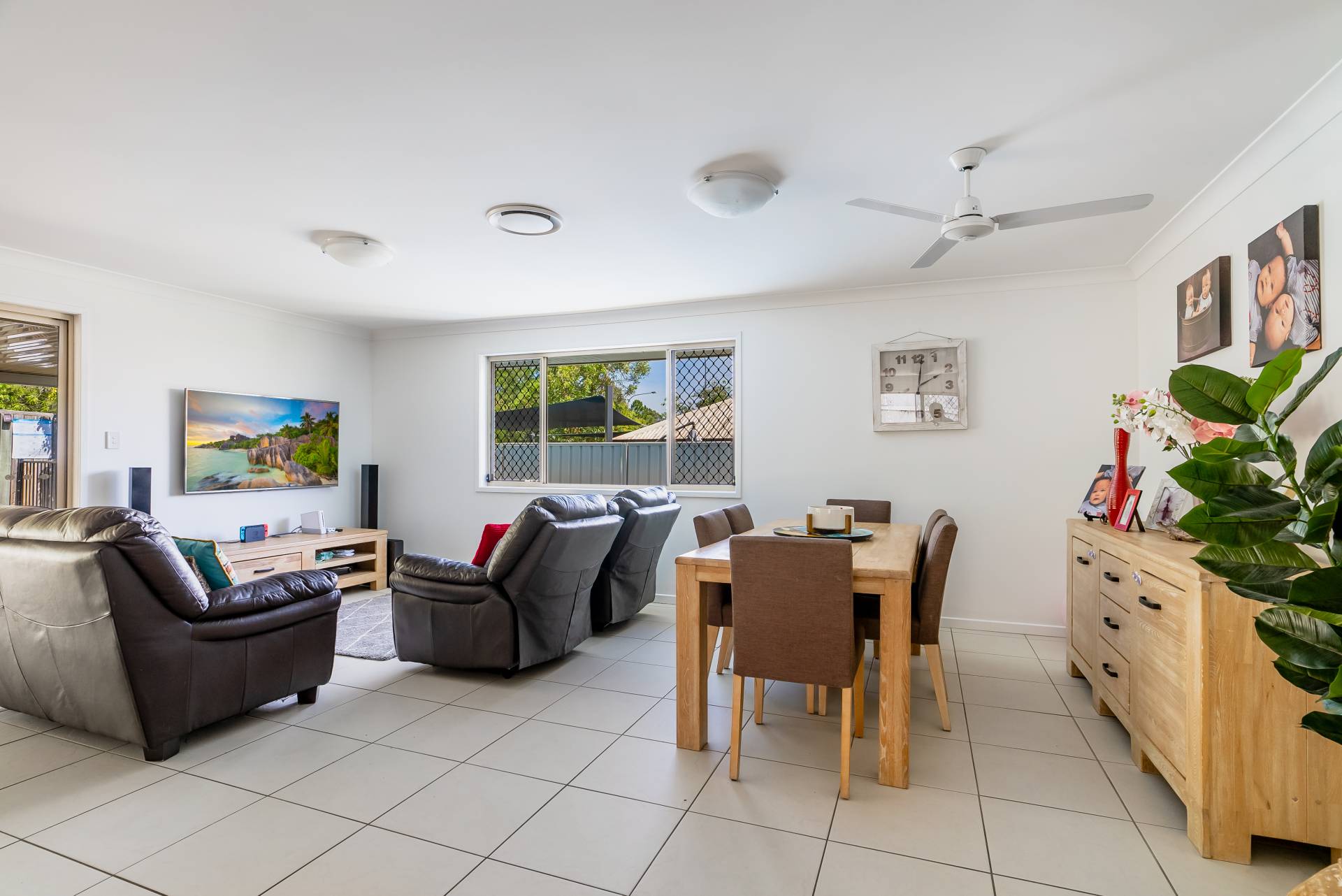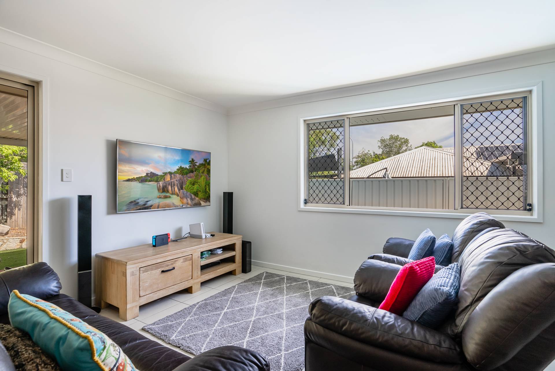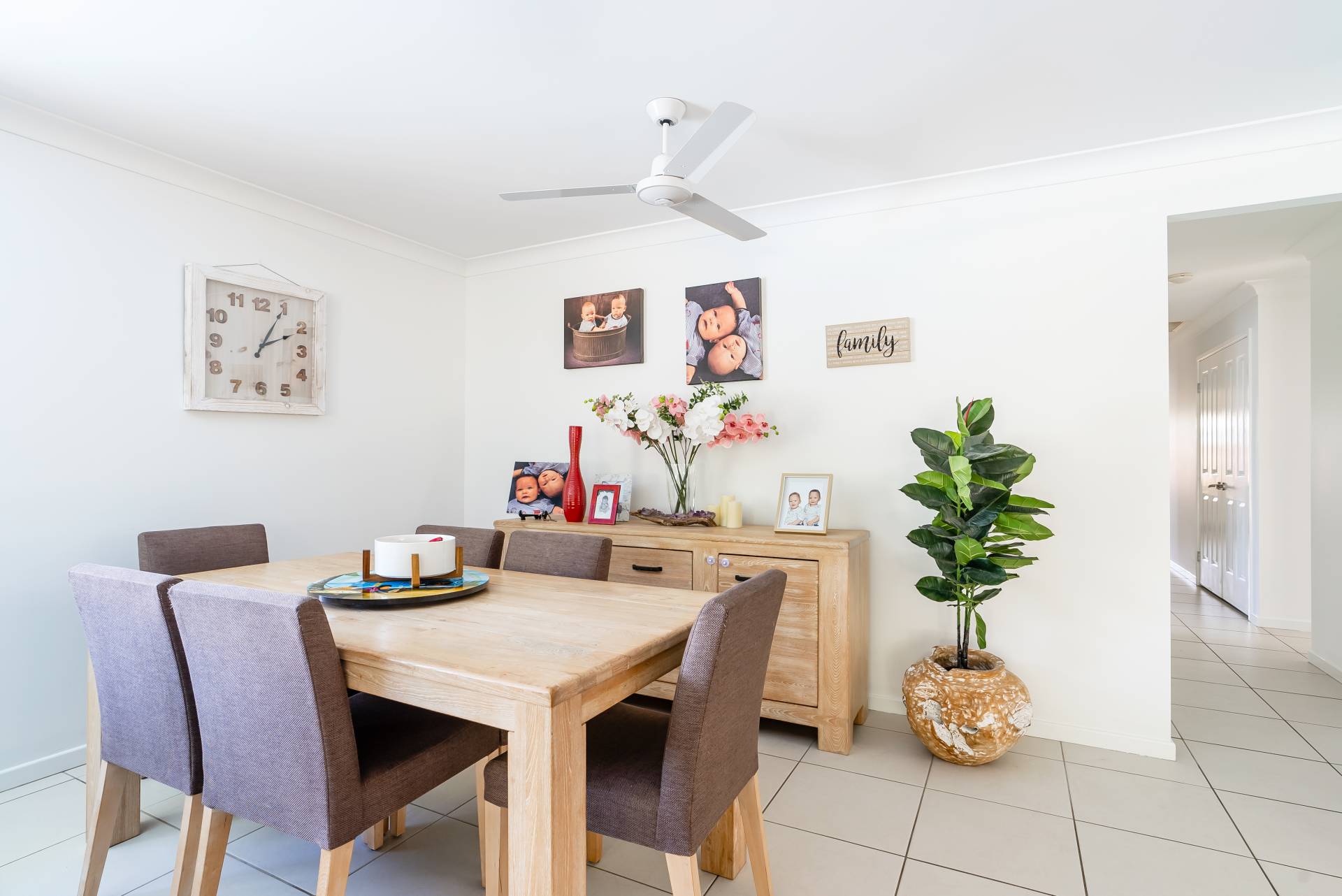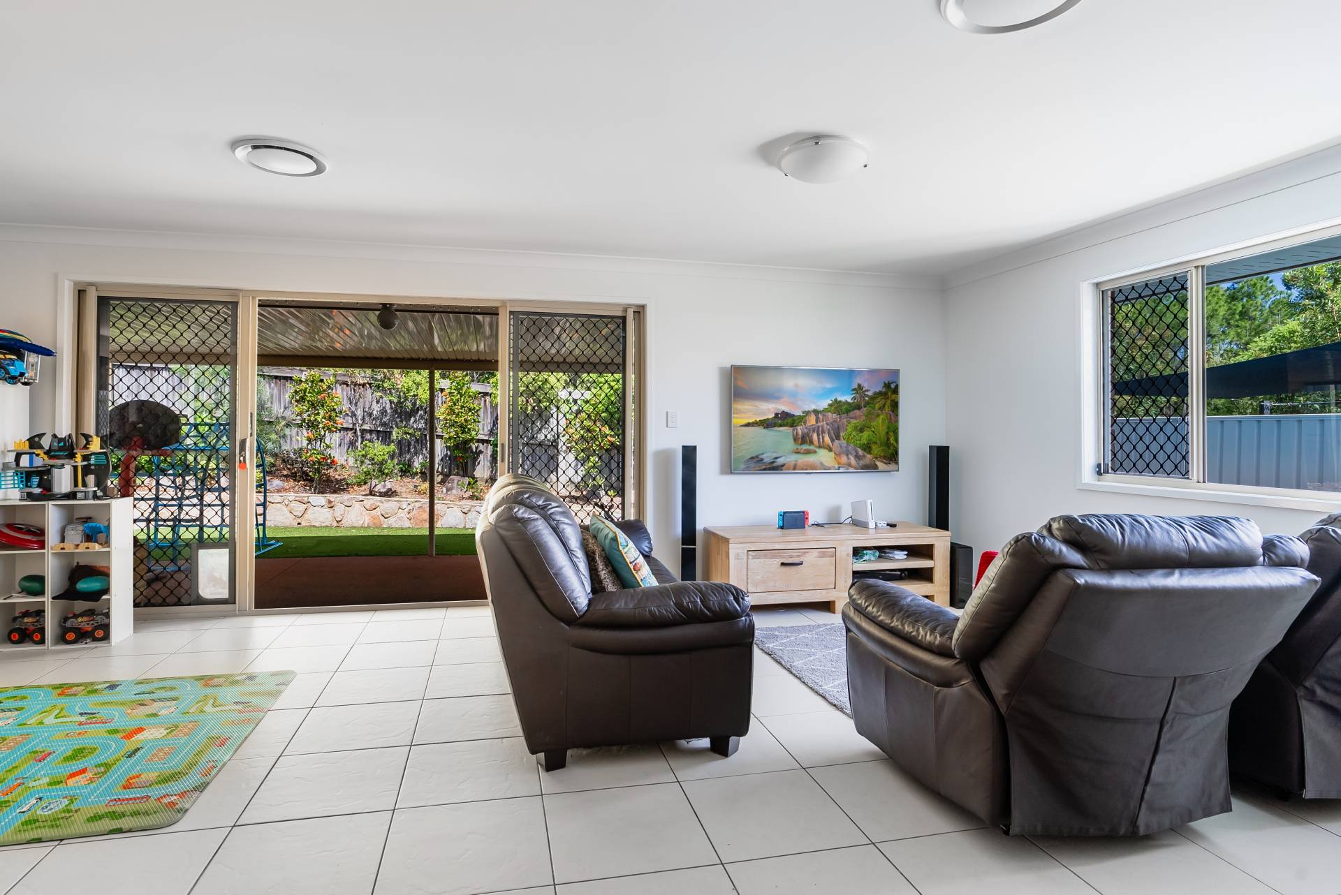 This fantastic family home is located on a beautiful block in Caloundra West. This perfect position is privately surrounded by established trees and shrubs. The well-designed floorplan epitomizes functional family living and great entertaining. You'll love the ducted air-conditioning, solar panels to keep down the costs, large kitchen with breakfast bar and spacious, light filled dining and living areas that flow seamlessly outdoors to the huge covered patio area. The spacious family kitchen is well-equipped, boasting ample bench space with an extra-long breakfast bar, great storage including spacious pantry and modern appliances. The main living space is flooded with natural light through the many large windows.