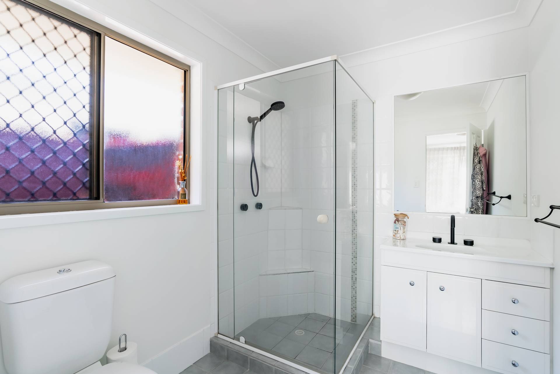 Bright and airy open-plan living and dining flows off the kitchen then out to the huge covered entertaining patio, all beautifully surrounded by shrubs and trees. Enjoy the fully fenced private yard (totally safe for the kids and pets) and escape the hot afternoon sun in the fantastic pool! This property is the perfect indoor/outdoor space for all-weather entertaining. The king size master bedroom features walk-in wardrobe and spacious ensuite, complete with large shower and black tap ware. The further three bedrooms are equipped with built-in wardrobes and ceiling fans for comfort.