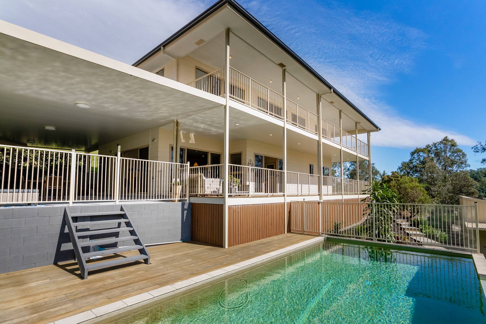 From here, you can step down into the impressive pool area or pull up a chair and soak in the serenity from the wide shaded verandah stretching the length of the house.