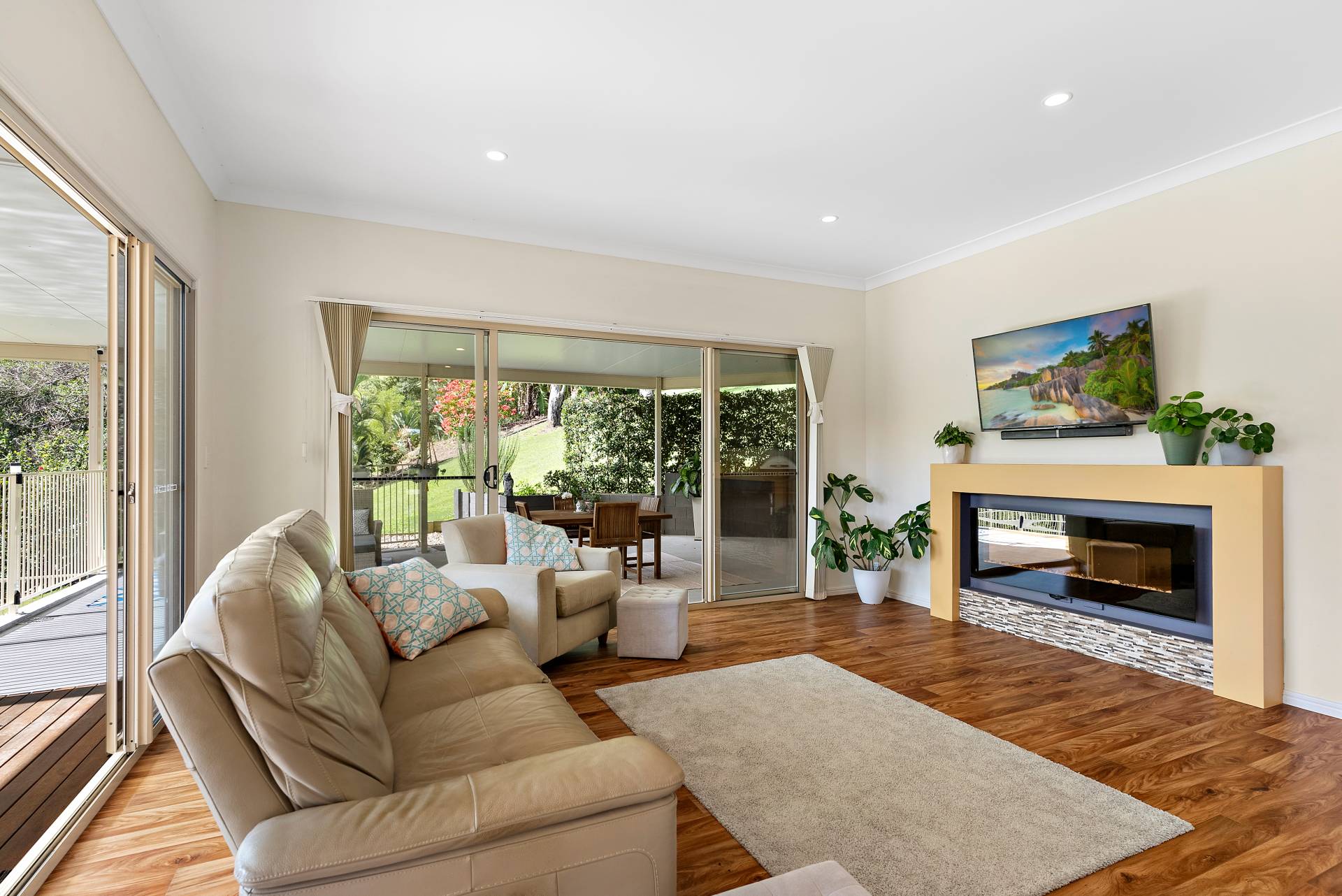 With four spacious bedrooms, three bathrooms, two living areas and beautiful covered entertaining spaces, the property provides ample space to accommodate the whole family.