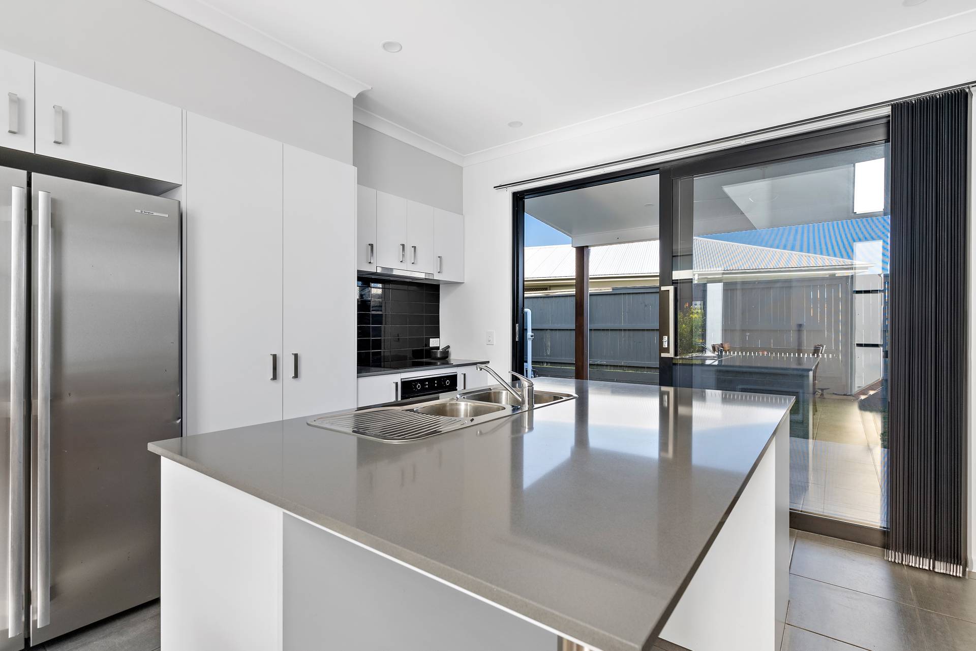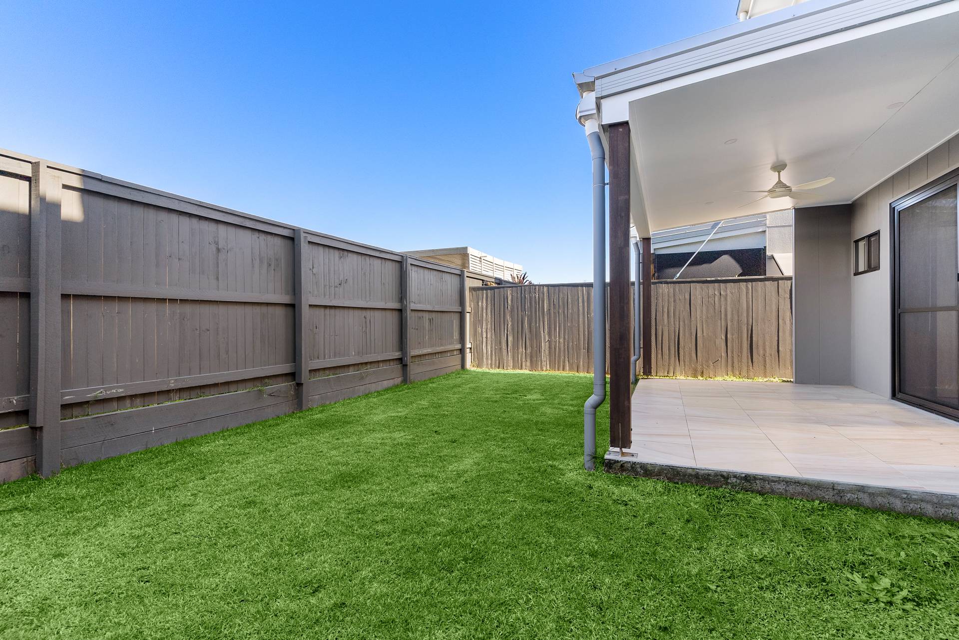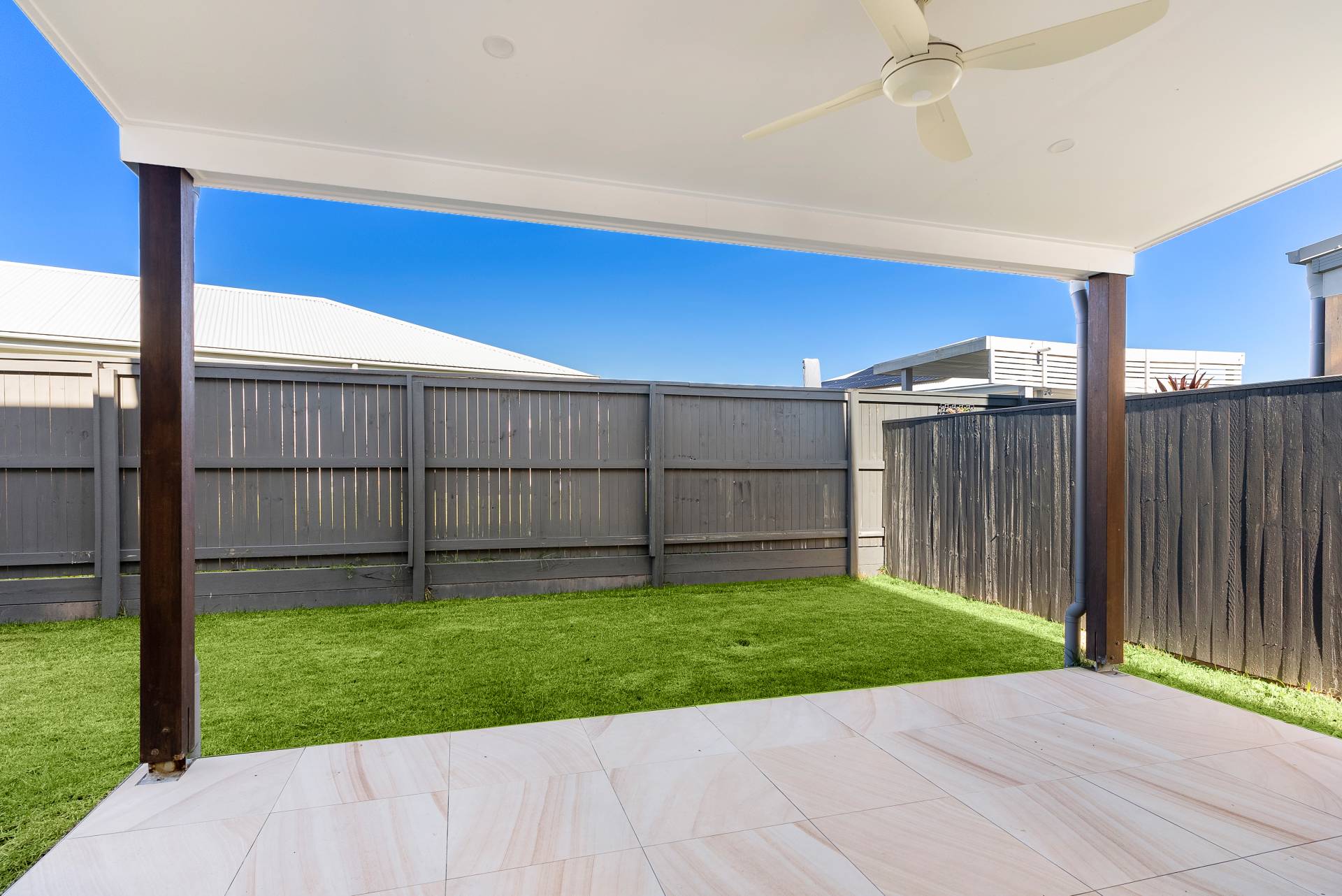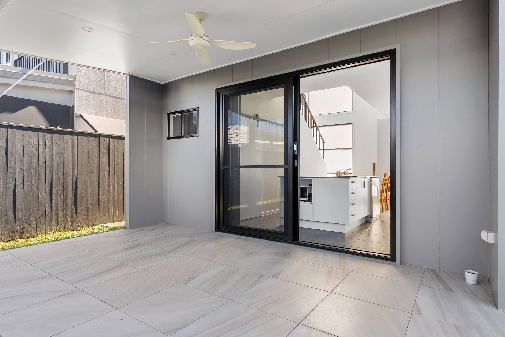 Spacious alfresco with 600-600 sandstone effect tiling