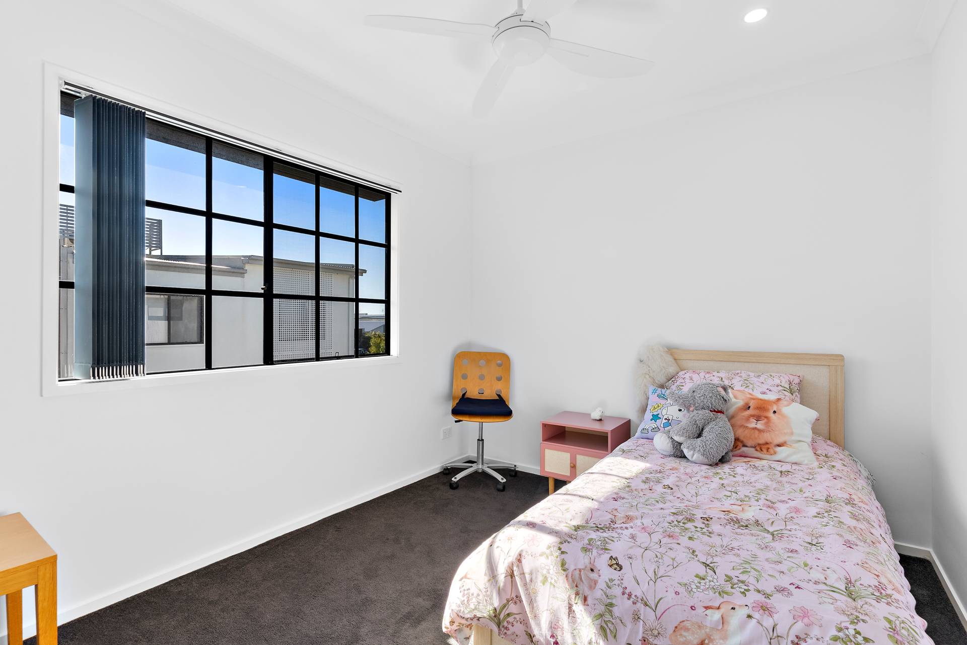 This sought-after, loft-style home offers three bedrooms upstairs all with built-in robes and ceiling fans. The master bedroom boasts ensuite bathroom and air-conditioning with large windows and natural light aplenty. The upstairs lounge offers natural light as adding in from the large glass windows and stunning feature window. The main bathroom is also well-appointed with bathtub, shower and separate toilet. This contemporary three-bedroom home offers a perfect combination of style and functionality.