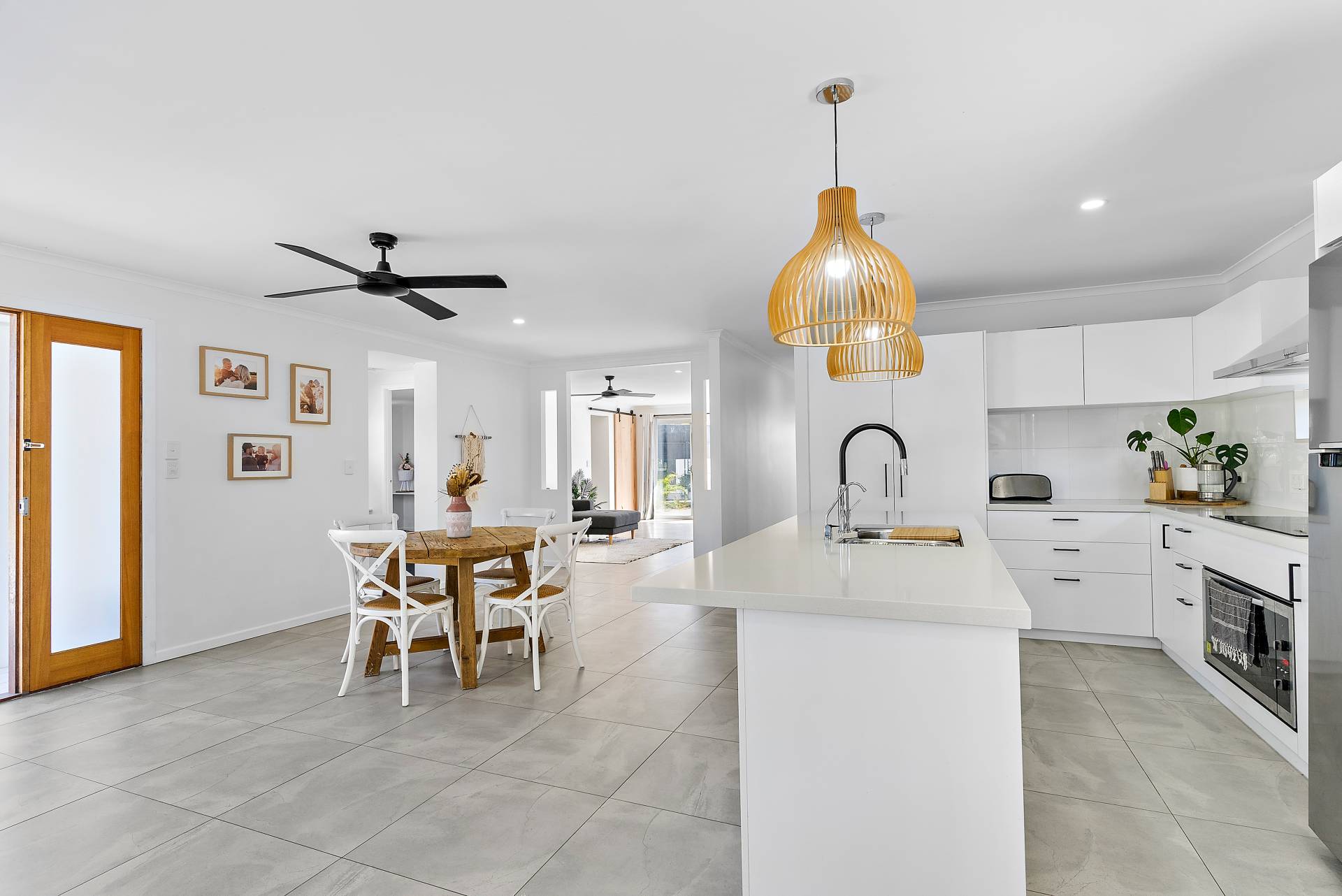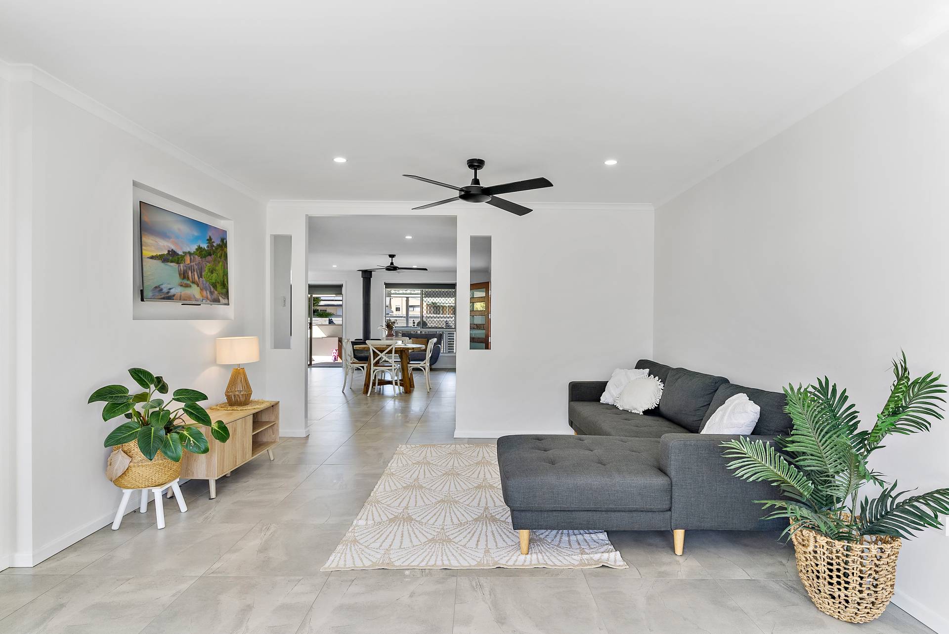Immerse yourself in contemporary coastal living with this beautifully renovated home in Currimundi. This impressive single level residence, set on 536sqm is a Sunshine Coast dream. The masterfully designed floor plan utilises seperate zones for luxury living and entertaining both indoors and out!