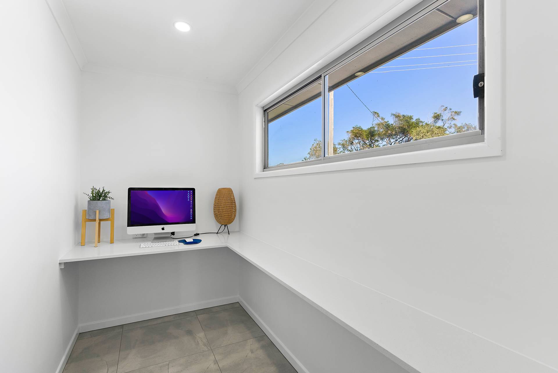 This fantastic property offers three bedrooms and an office. Bedrooms one and two are equipped with built-in cupboards, ceiling fans and large windows. The master bedroom is accessed by a stunning wooden barn door with black hardware or via the glass sliding doors from the outdoor entertaining and pool. Bright and breezy, this generously sized room is equipped with ceiling fan and walk-in robe. The main bathroom offers floor-to-ceiling tiles, beautifully appointed, with chic' black sink, fittings and tap-ware. The seperate WC and laundry are located nearby with easy access to drying area outside.