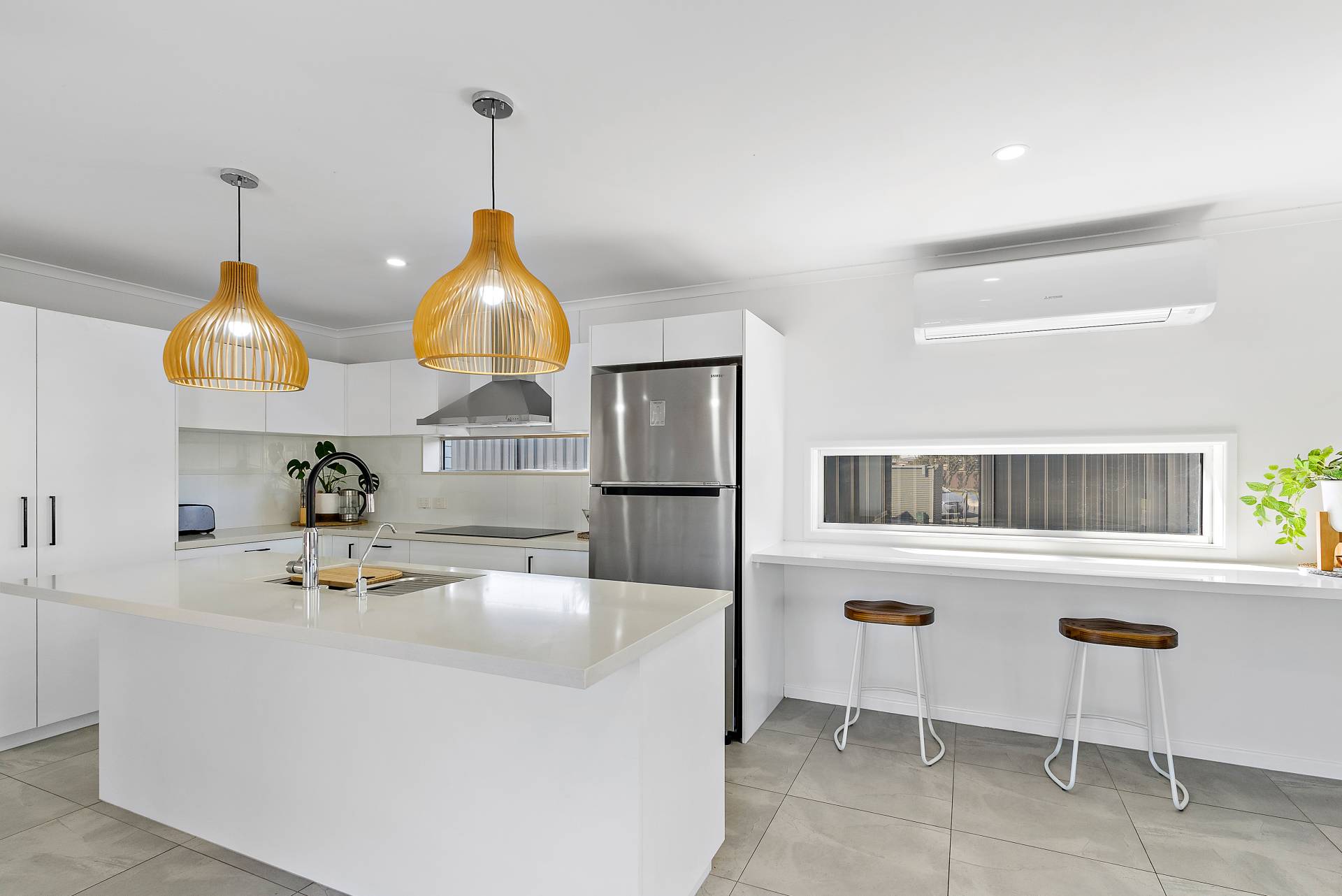 Welcomed by a gated entrance and large front door, this immaculate property opens onto the heart of the home. The open-plan kitchen, dining and lounge flows effortlessly through to outdoor living spaces on either side of the property. The stunning kitchen boasts quality tap-ware and fittings, modern appliances including a 900ml oven, cooktop and range as well as plenty of bench-space. The sink is in-built to the large kitchen island with pendant lighting that perfectly frames the space. With natural light in abundance, the spacious kitchen offers windowed splash-back as well as a built-in breakfast bar with windowed view to the garden. Also flowing off this stunning kitchen a covered outdoor entertaining area. This fantastic space offers a home for the barbecue and outdoor bench-space for all your culinary desires!