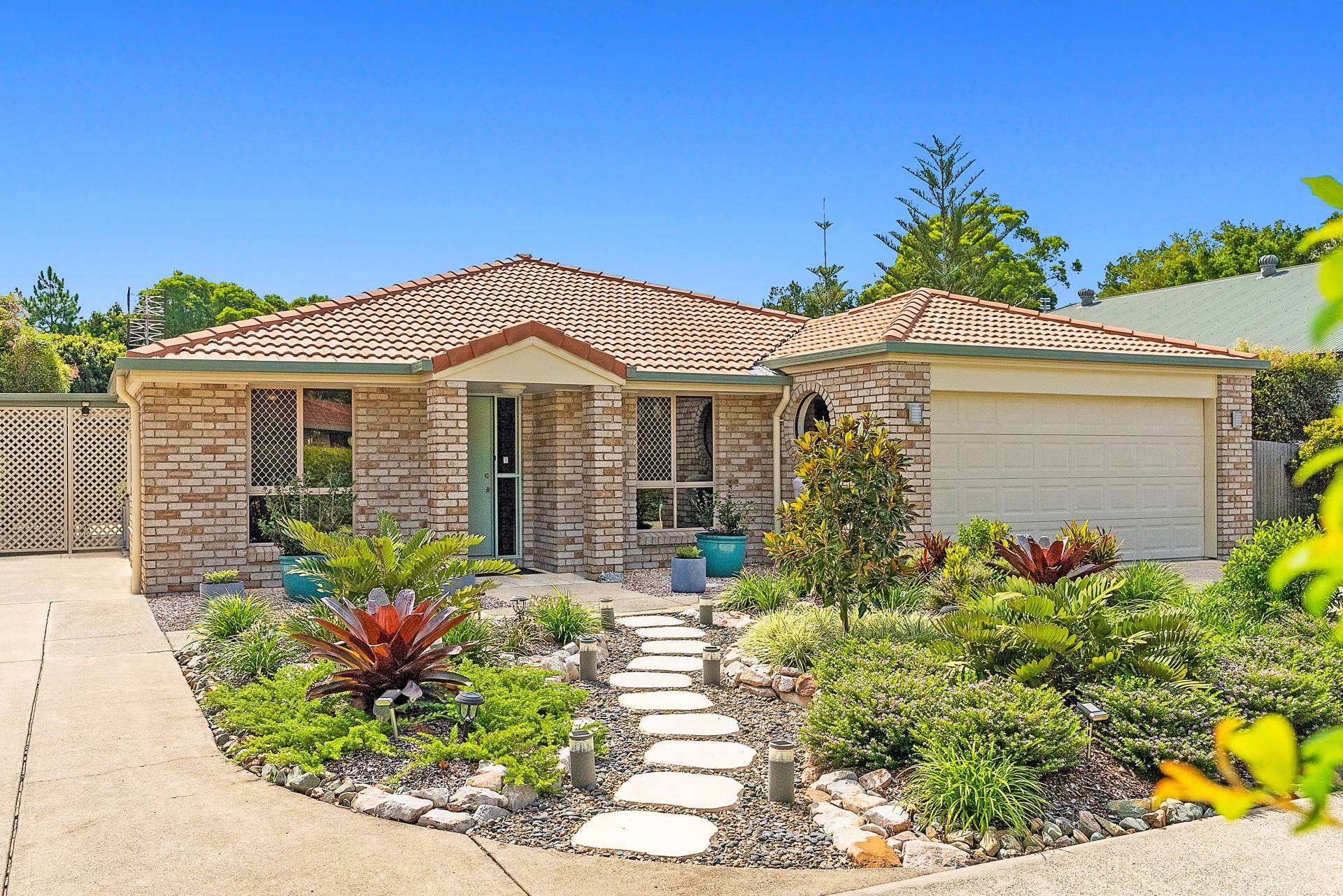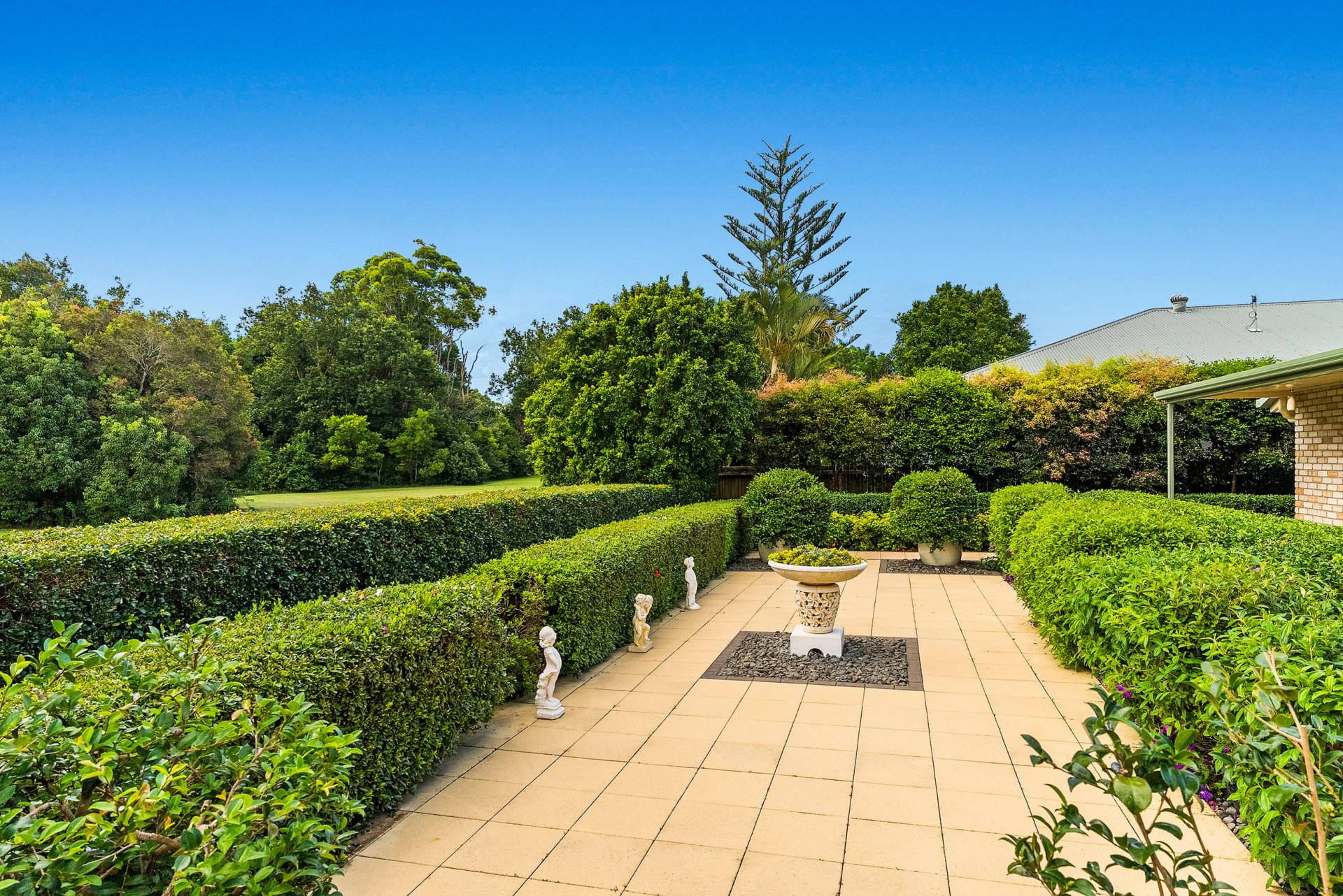 At the front of the house, high hedges surround the garden to ensure privacy. The leafy level backyard, meanwhile, is a peaceful haven of relaxation which allows access out to the trails, grass and bush of lovely Cooroy Park beyond.