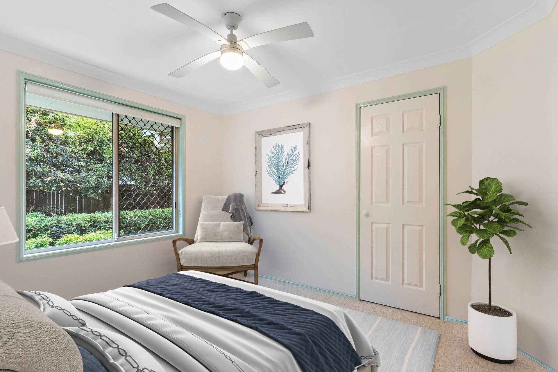 The large main bedroom is serviced by a contemporary ensuite and provides a lovely park and garden outlook.