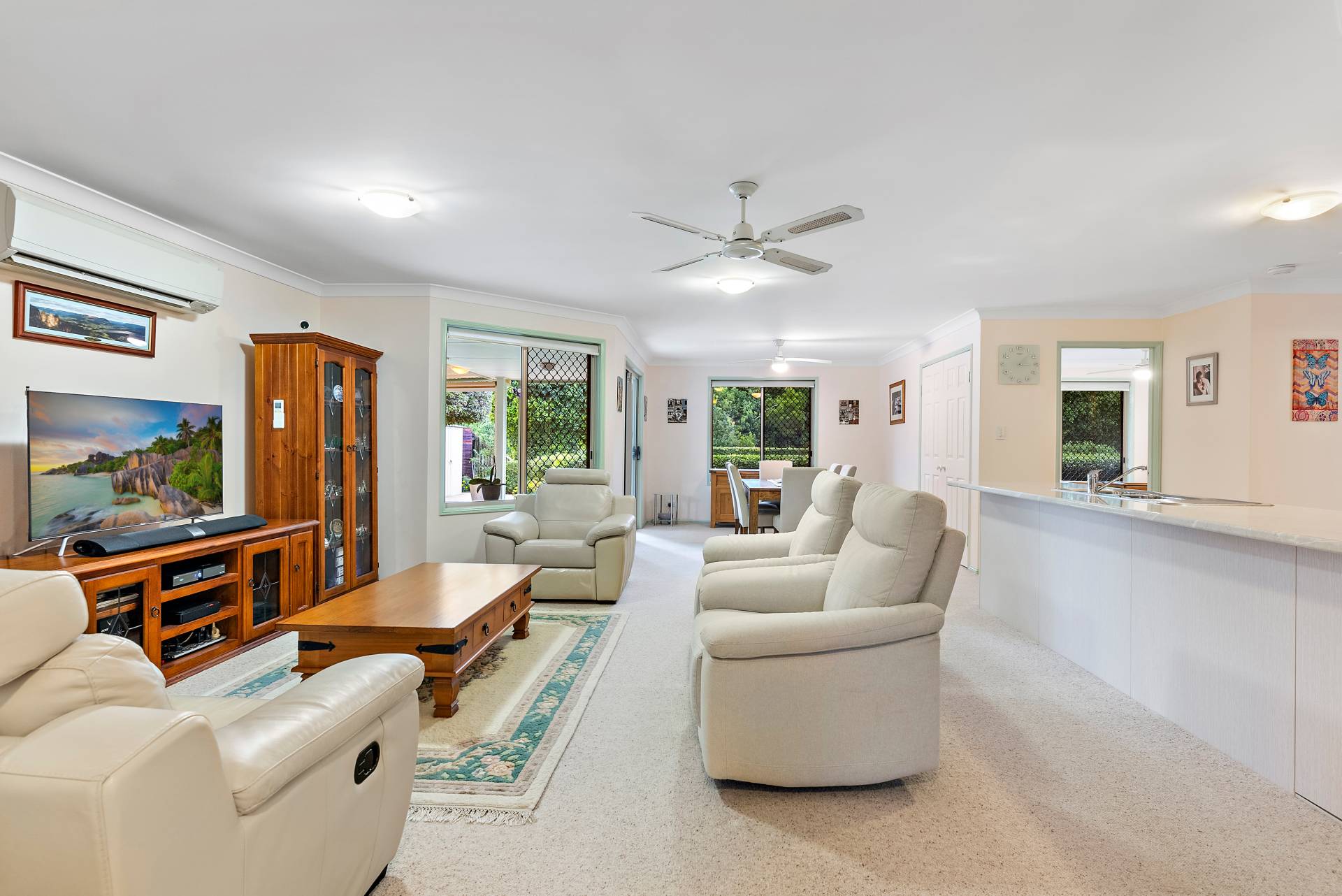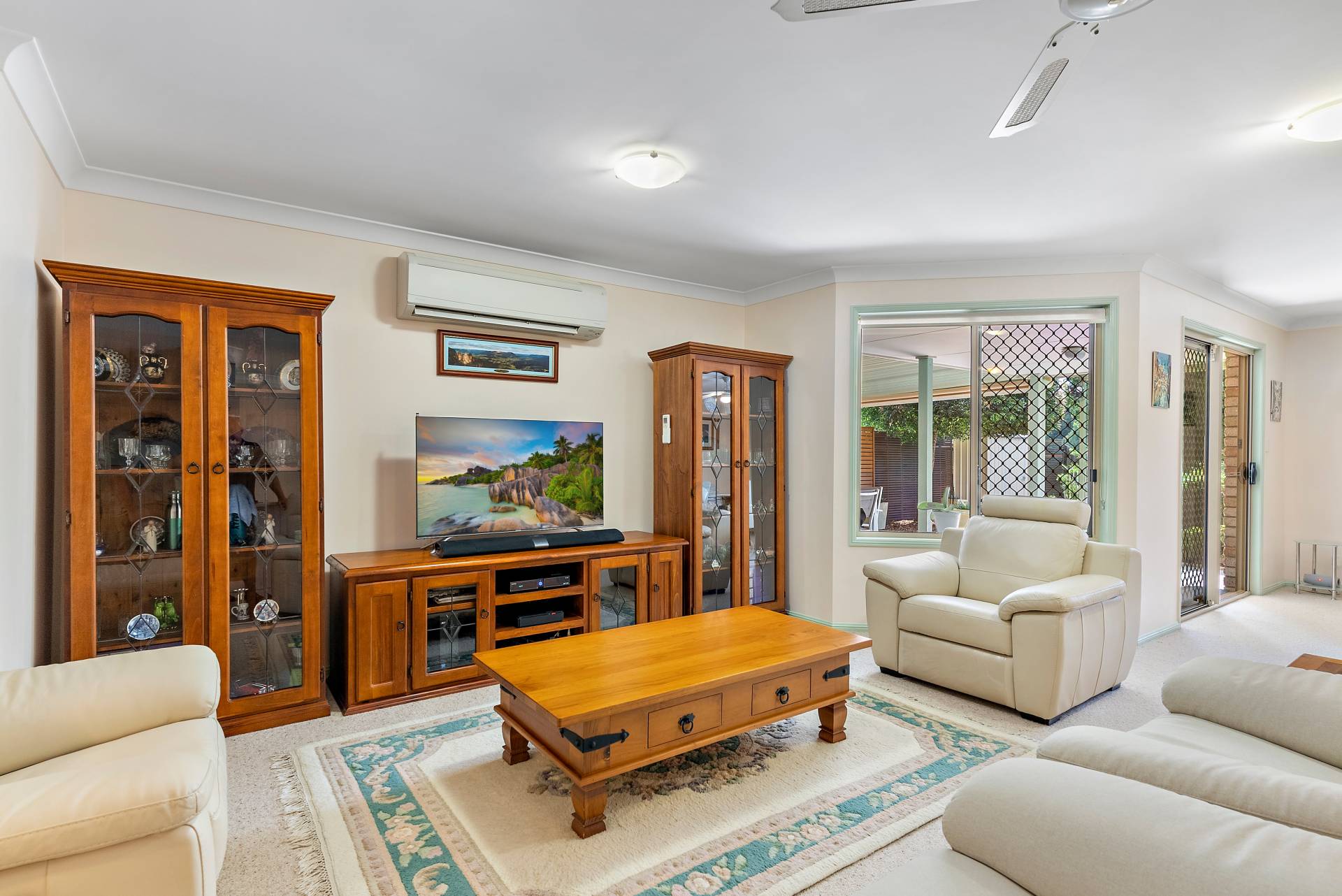 A high-powered air-conditioner cools the home superbly, and there are fans and flyscreens throughout. The 5kW solar power and solar hot water systems, meanwhile, ensure this impeccably maintained property is extremely inexpensive to run - in fact, the owners receive credits for power.