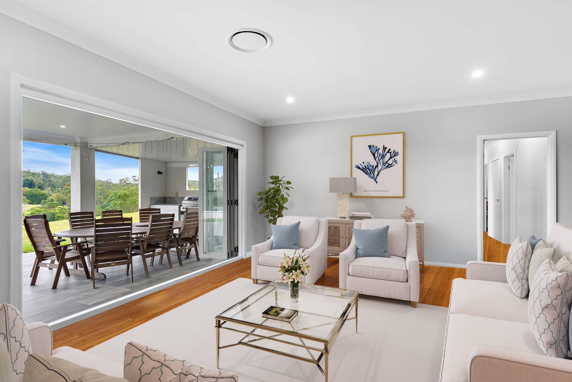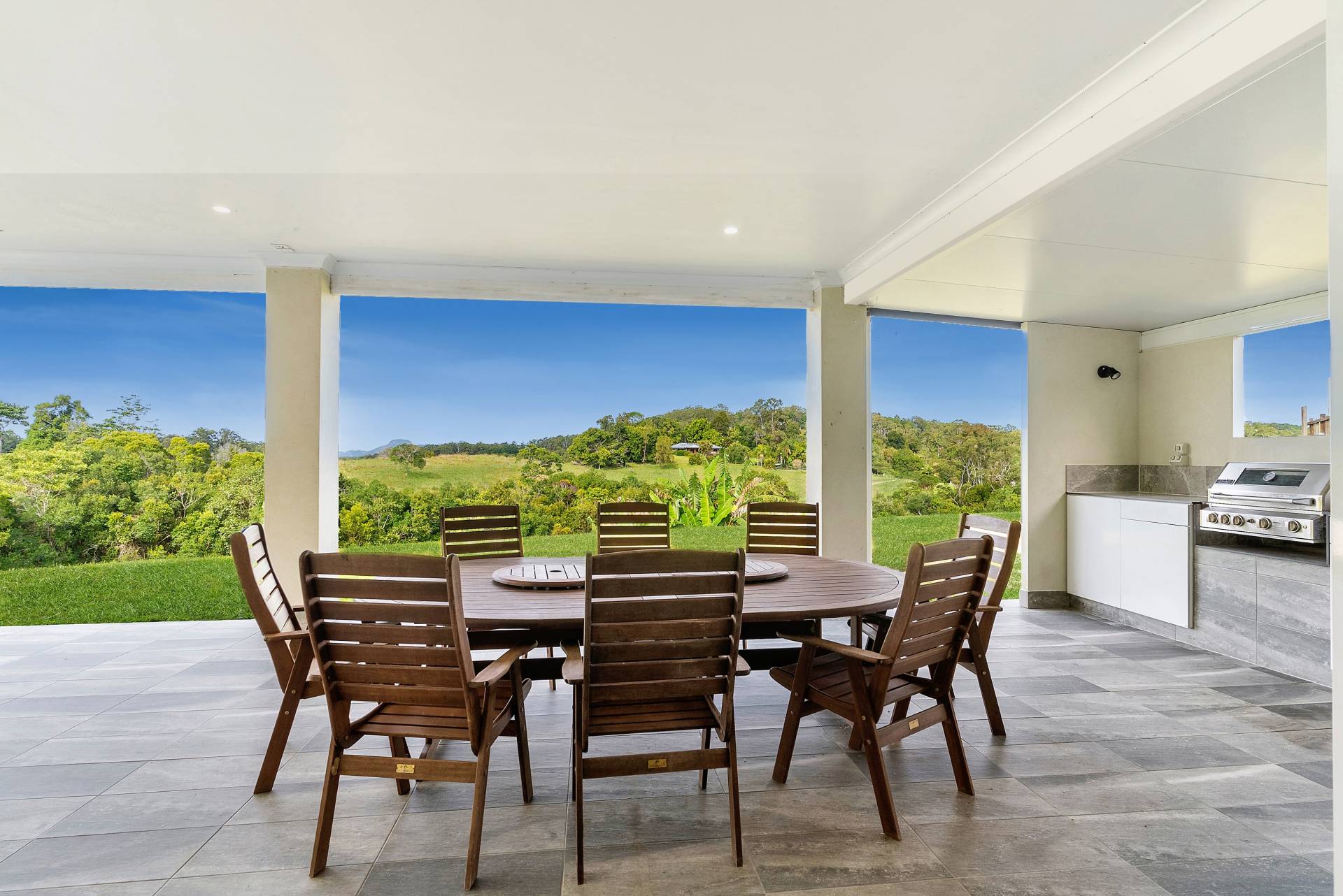Designed to maximise the coastal breezes and country vistas, it boasts a huge undercover al fresco entertaining terrace with BBQ kitchen looking across to Mount Ninderry.