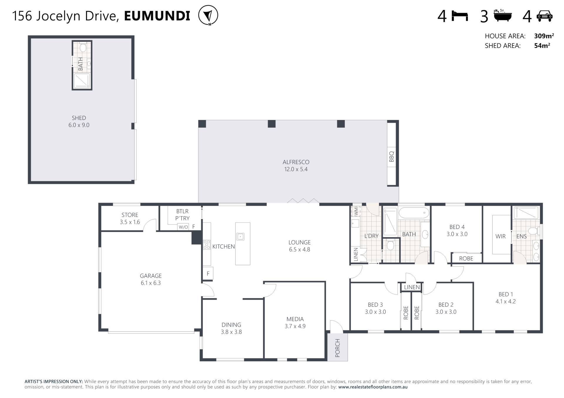 Outside, the 9 x 6m two-bay shed has its own bathroom and offers perfect workshop and storage space.