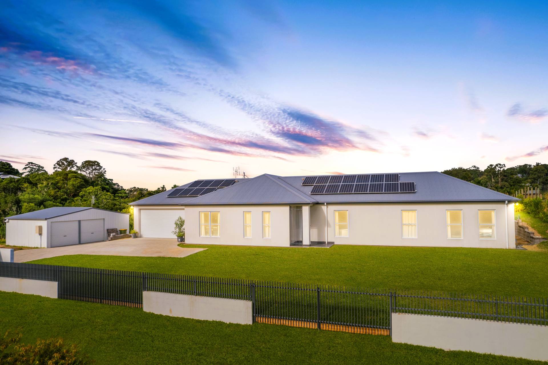 This spacious newly-built home offers valley and mountain views on 1.6 peaceful, private acres close to Noosa and Eumundi.