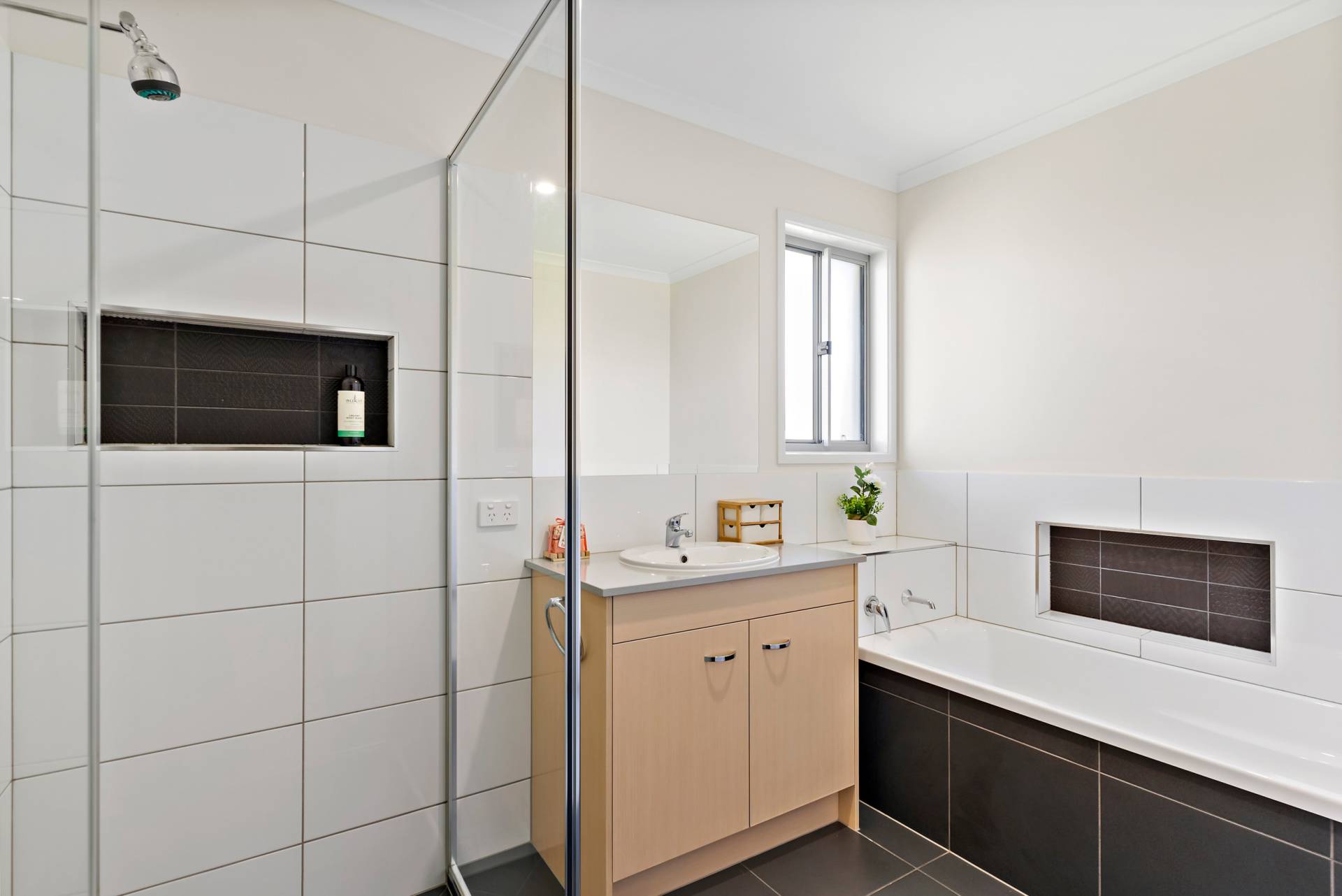 The master bedroom is generous in size boasting walk-in robe and ensuite with feature shower niche. This stunning room is framed by bedside pendants on individual switches perfecting this tranquil space. The further three bedrooms and activity room are located at the rear of the property - thoughtfully designed to suit a family. All three bedrooms are fitted with built-in robes and ceiling fans. The main bathroom is easily accessible from the rear bedrooms offering separate WC, bathtub, and shower both with feature wall niche and views to the outside to the huge yard!