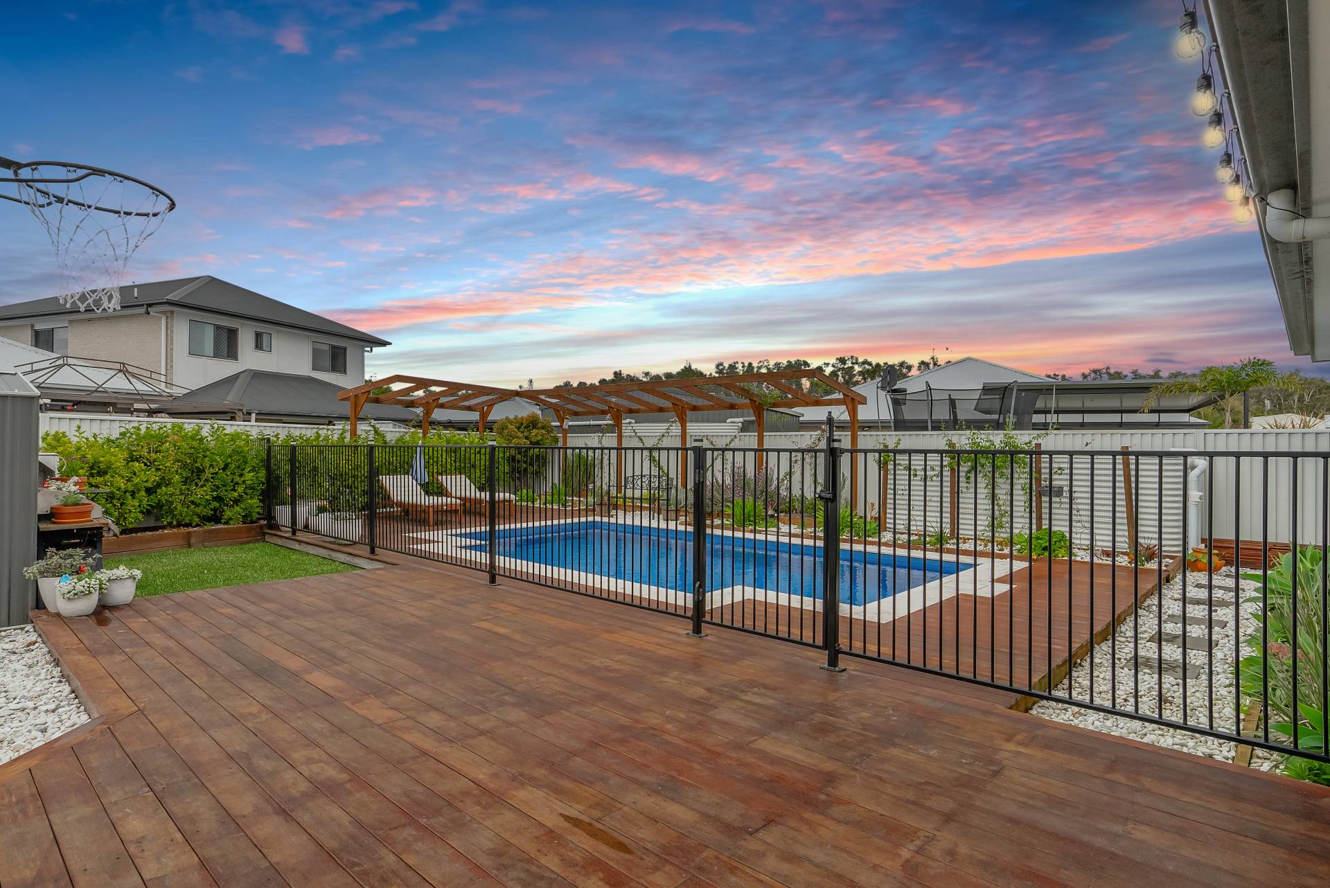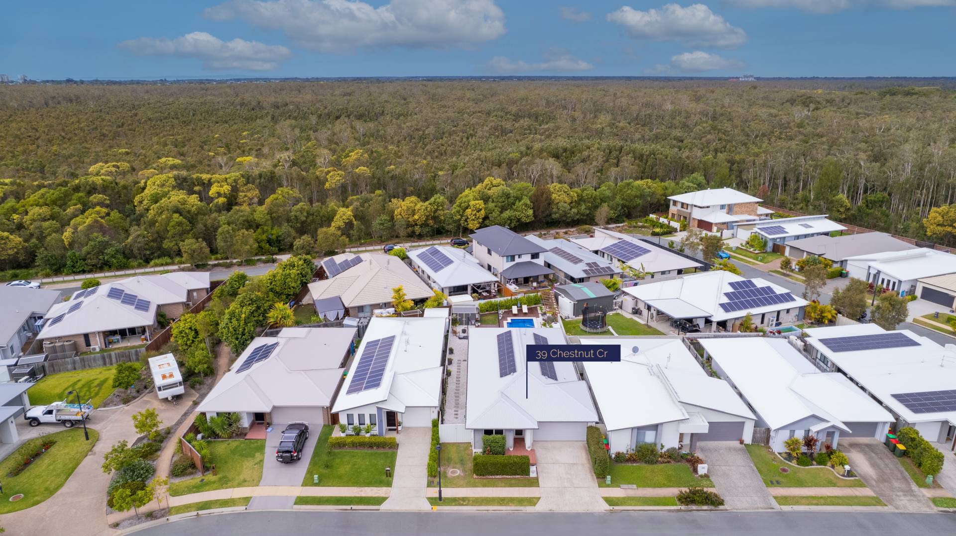 Welcomed by a beautifully landscaped garden and decked entrance, this home conveys modern luxury in a tranquil pocket of Caloundra West. 39 Chestnut Crescent boasts timber effect flooring and wide hallways giving a lasting impression of space and light. Impeccably presented, this family home offers an impressive open-plan entertaining space. The striking kitchen is complete with luxurious walk-in pantry, modern appliances and reconstituted stone bench-tops. The expansive dining and living area opens onto a lavish decked alfresco entertaining space and inviting 7 x 3.9m pool. Perfect for the summer months ahead, this ultimate family home boasts multiple spaces by the glistening water to relax or entertain. The transition from indoor entertaining to the magnificent outdoors epitomises the Sunshine Coast lifestyle.