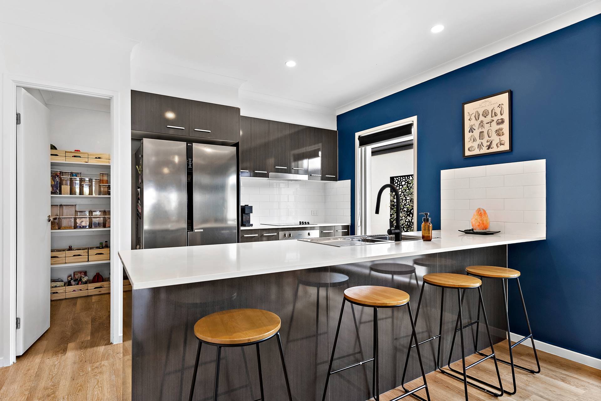 Entertainers kitchen with reconstituted stone bench-tops, modern appliances and walk-in pantry
