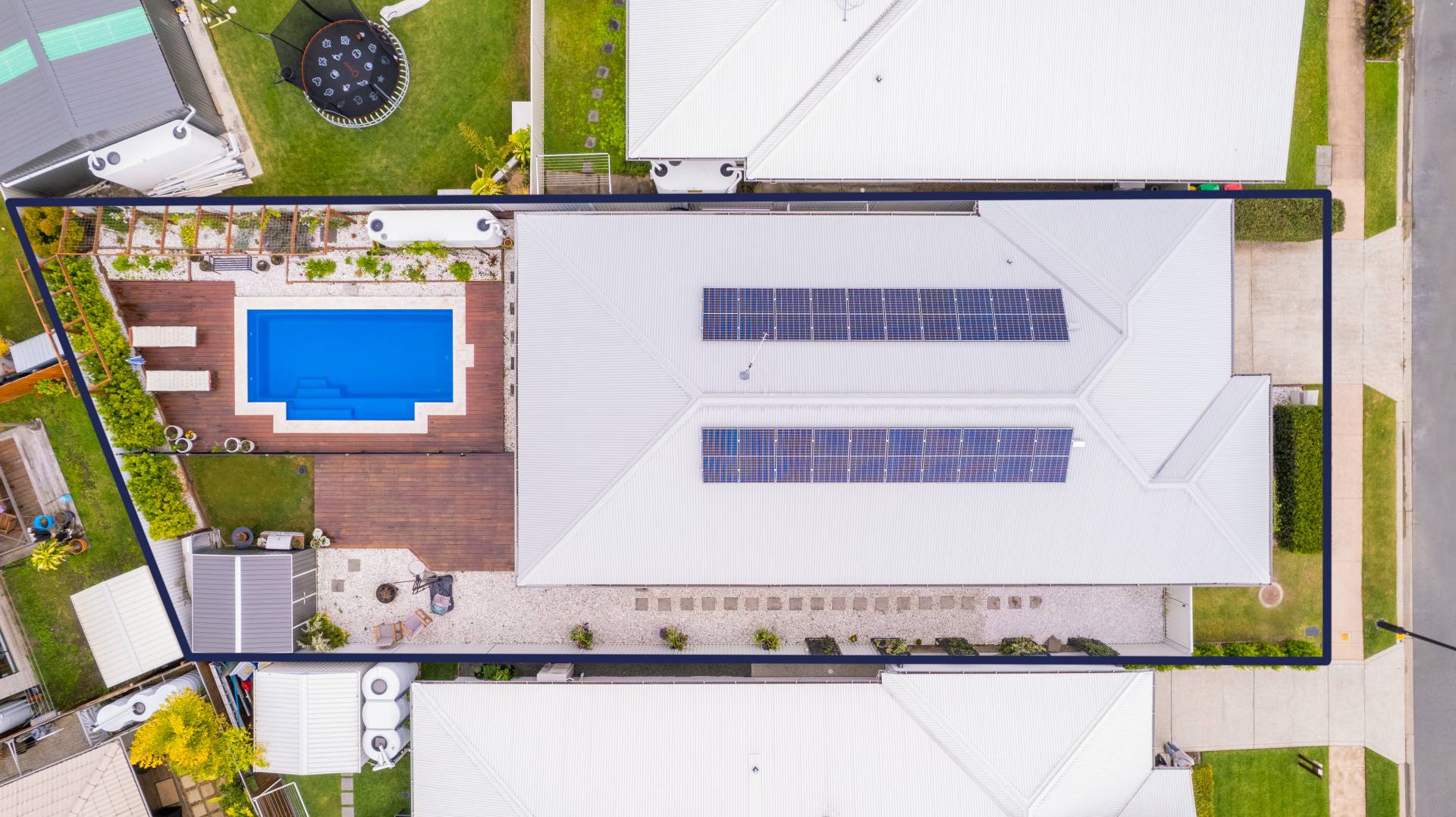 Deck Fenced Outdoor entertainment area in-Ground Pool Water Tank Grey Water System Solar Panels