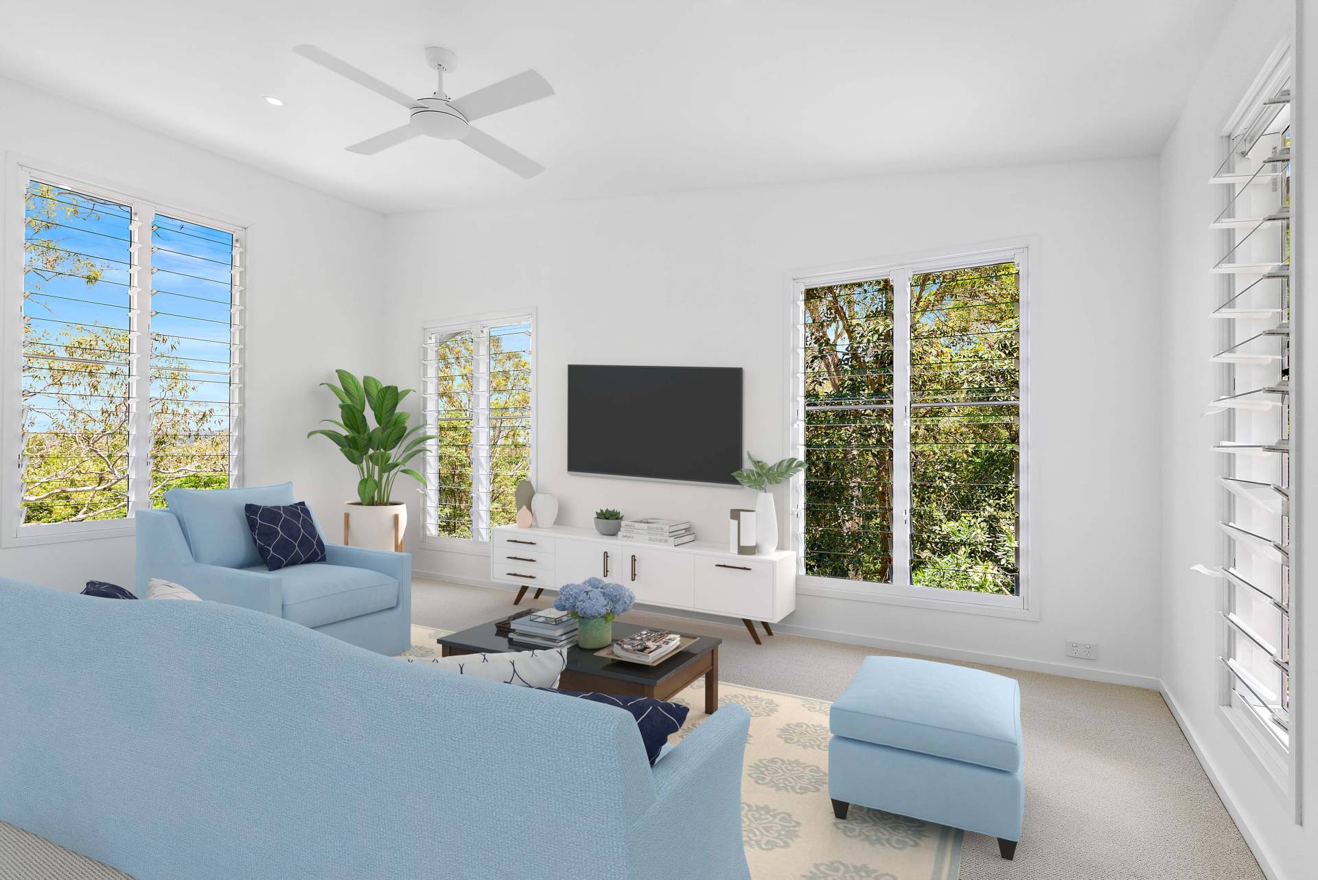 Upstairs, three more beautifully finished queen bedrooms, all with built ins, are serviced by a modern family bathroom. And there's another big living room providing excellent separation for those in need of a separate media or rumpus space.