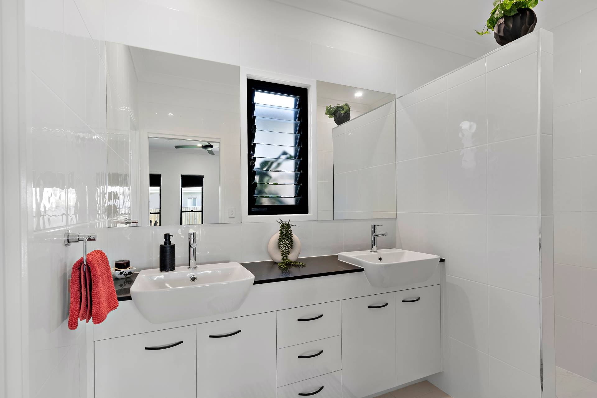 Master bedroom perfectly positioned at the rear of the property offering tranquil pool views, walk-in robe and twin vanity ensuite