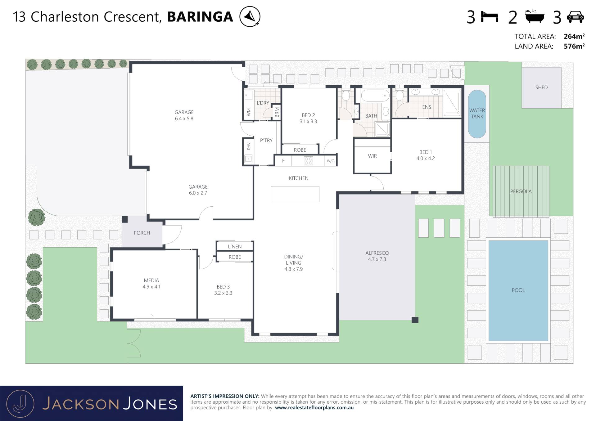 3 bedrooms | 2 bathrooms | 3 garage accommodation