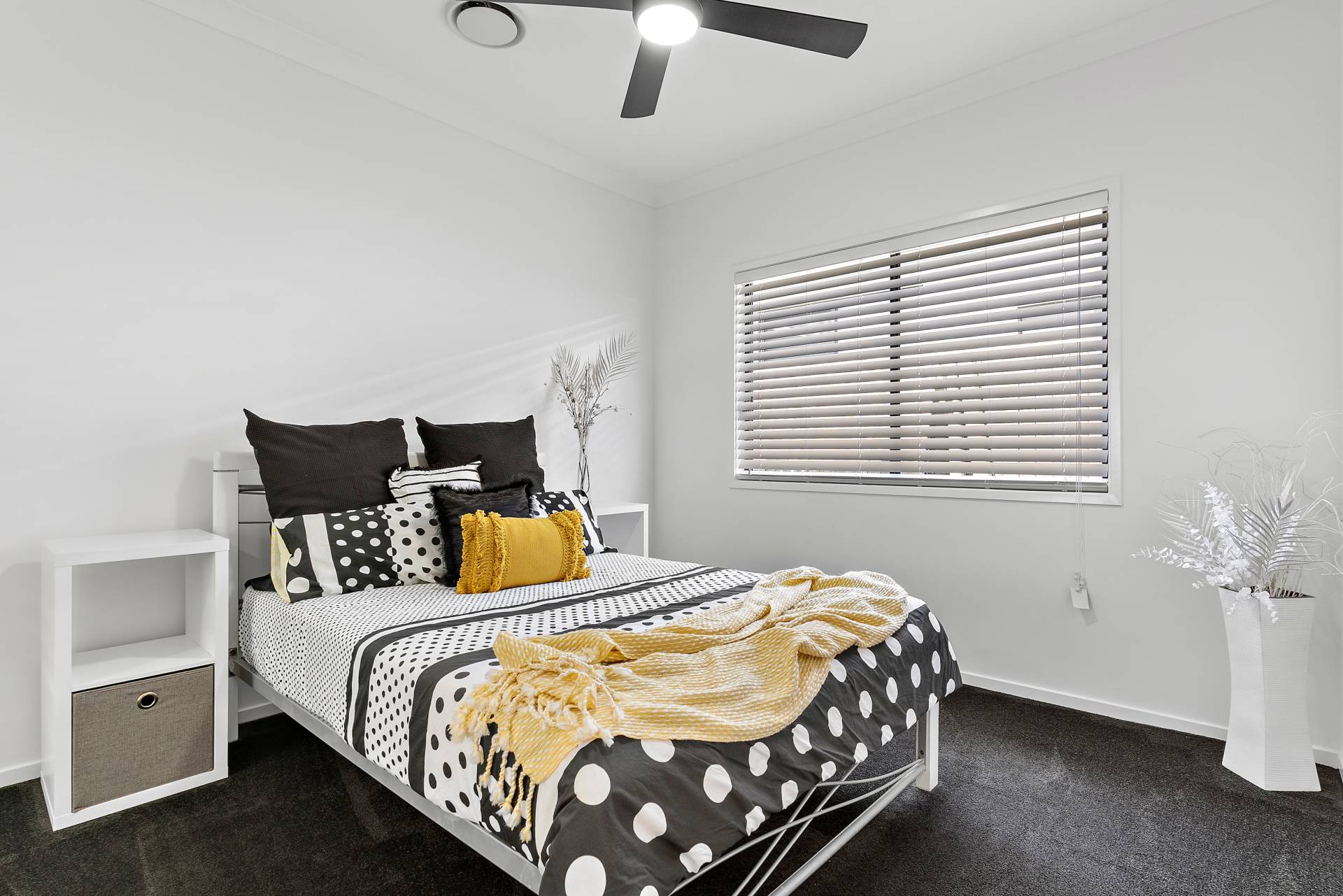 Two further bedrooms with built-in robes, ceiling fans and beautiful window coverings