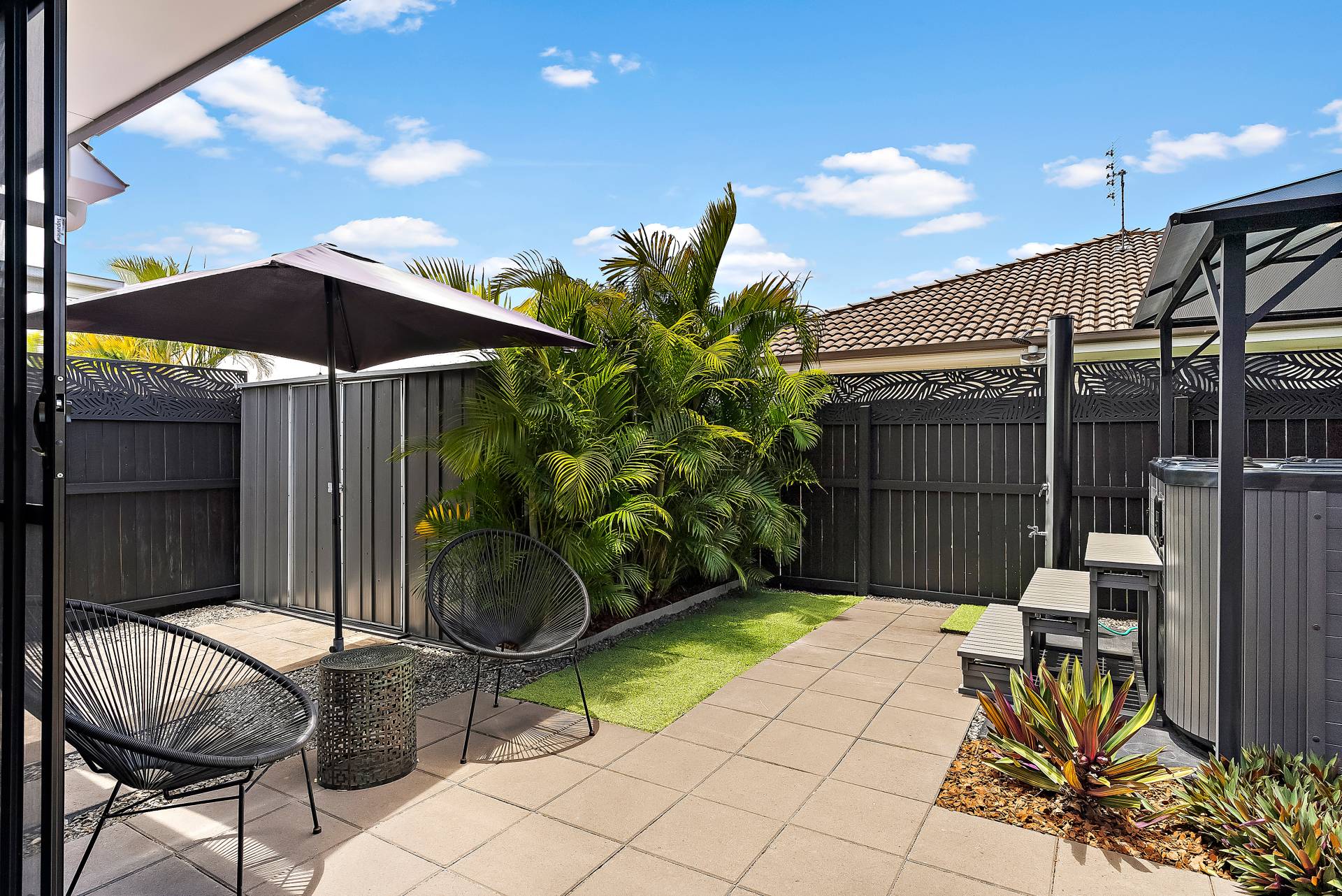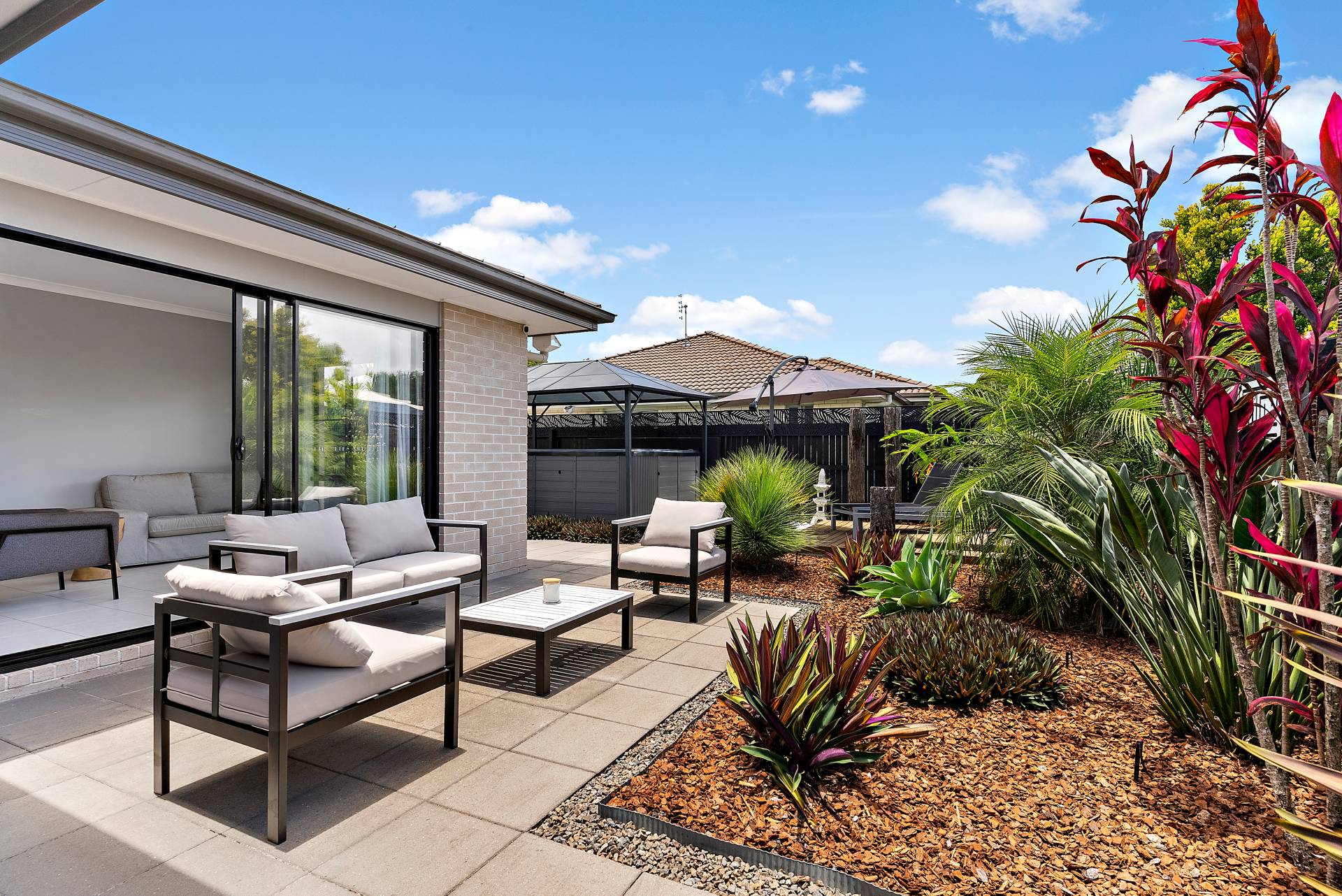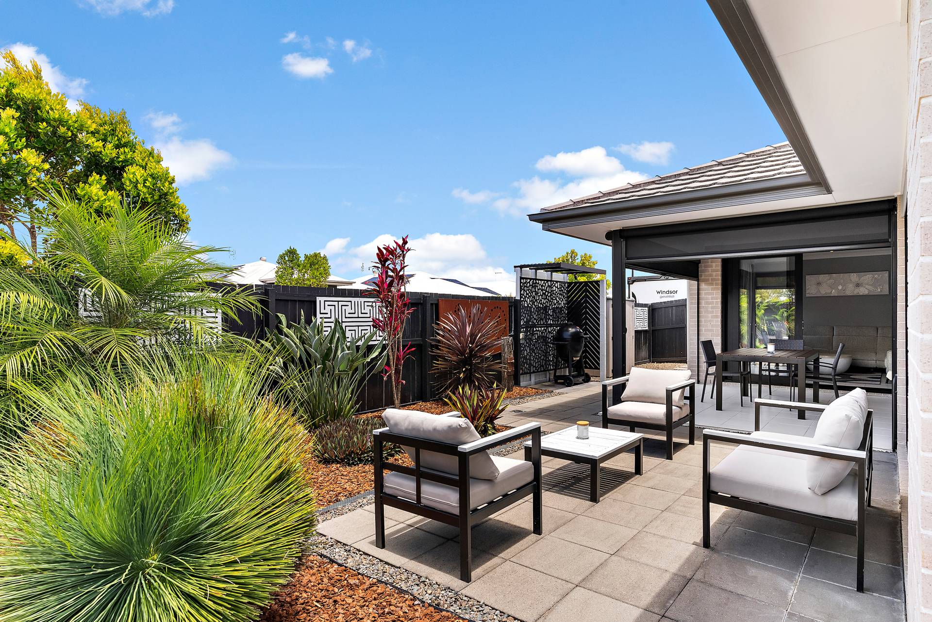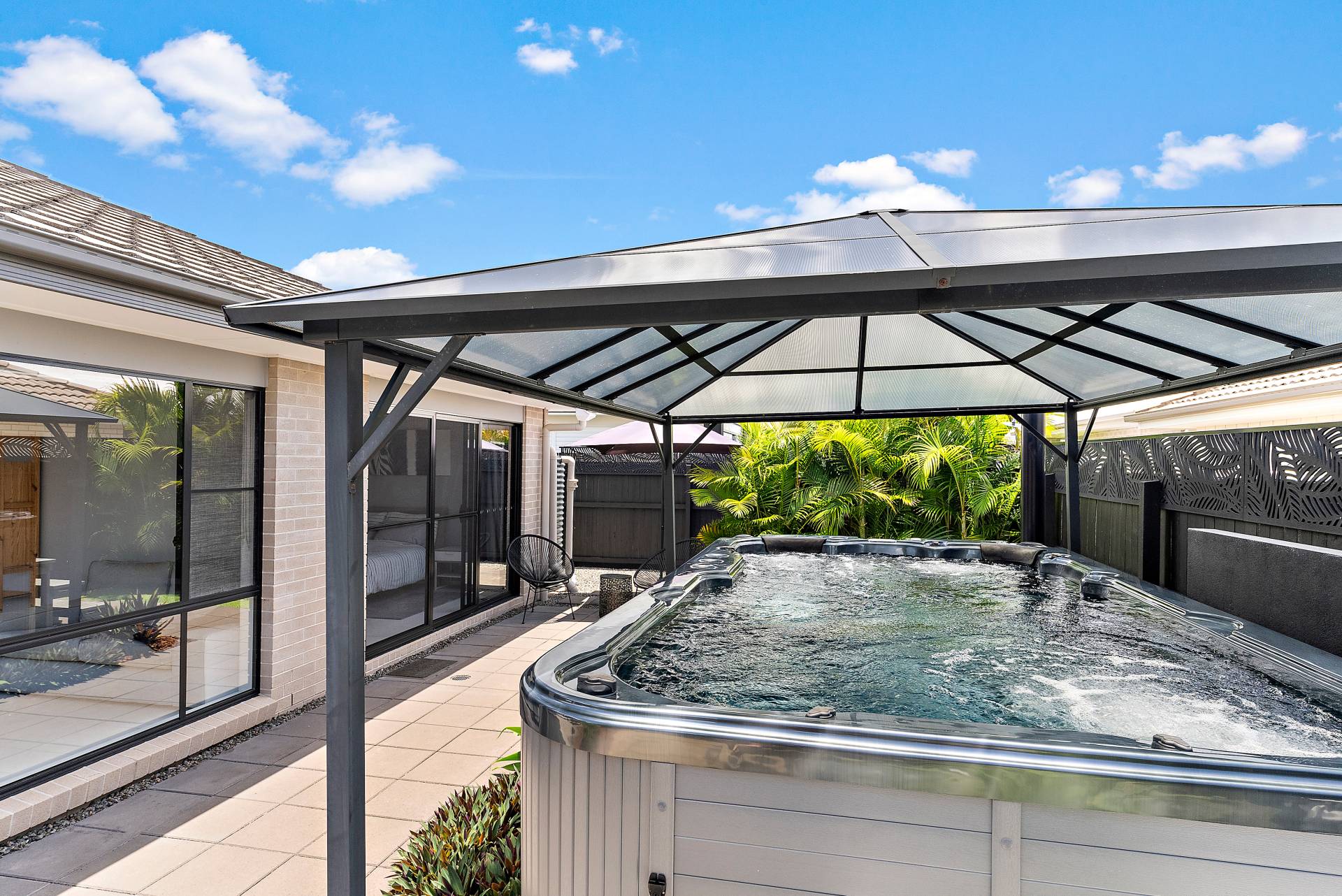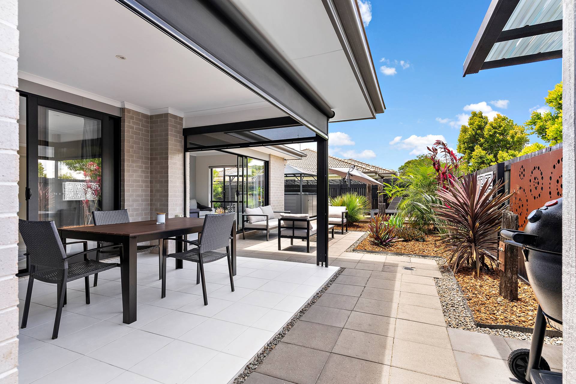 The modern kitchen boasts reconstituted stone benchtops with modern appliances, walk-in pantry and kitchen island, framed by contemporary pendant lighting. Extending the indoors to outdoor entertaining the lounge and dining meet with corner glass stacker doors opening onto the screened, covered alfresco. This is the perfect place to entertain and relax looking out onto the landscaped, low maintenance patio garden. Complete with established plants, sundeck and covered spa, this stunning home has it all.