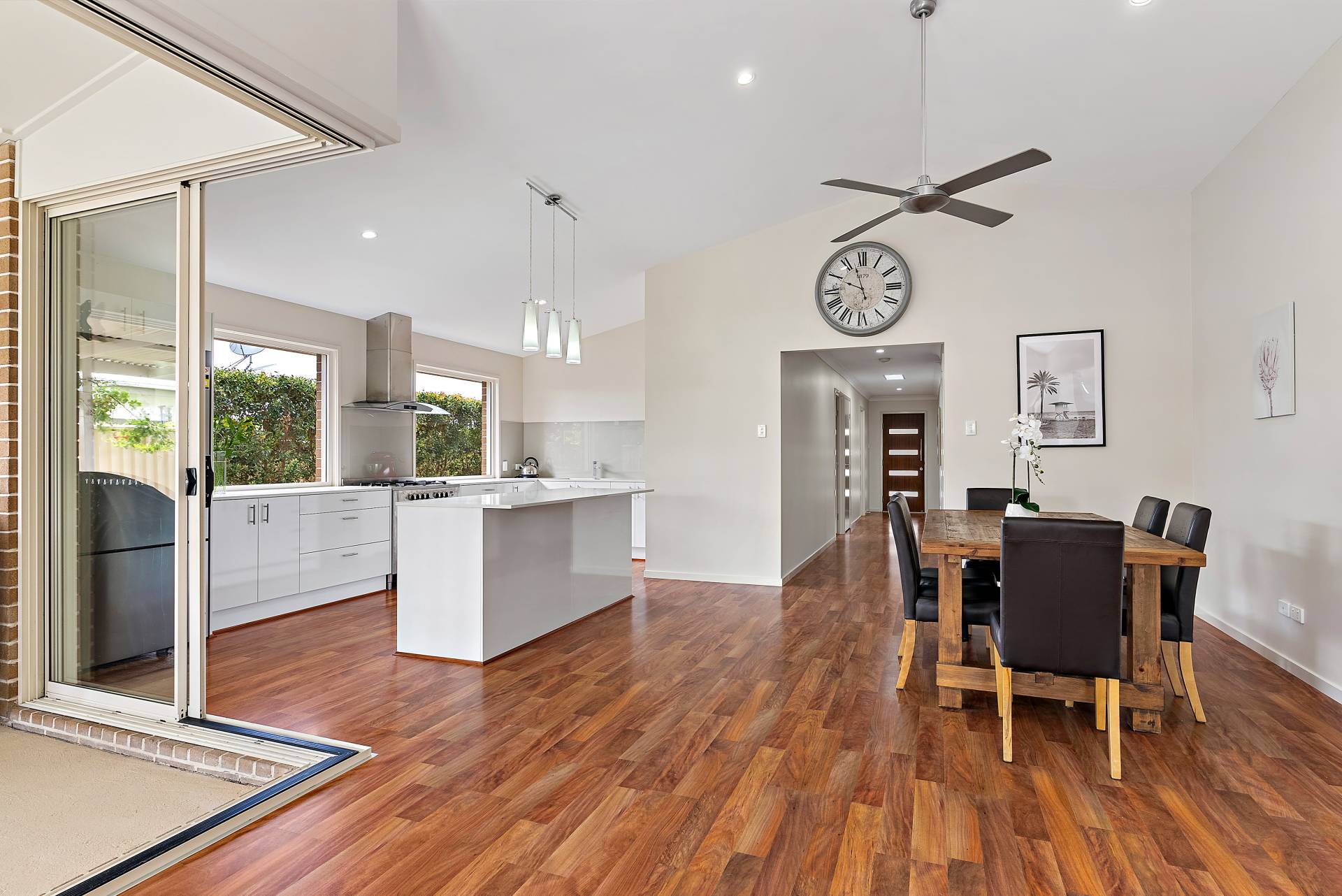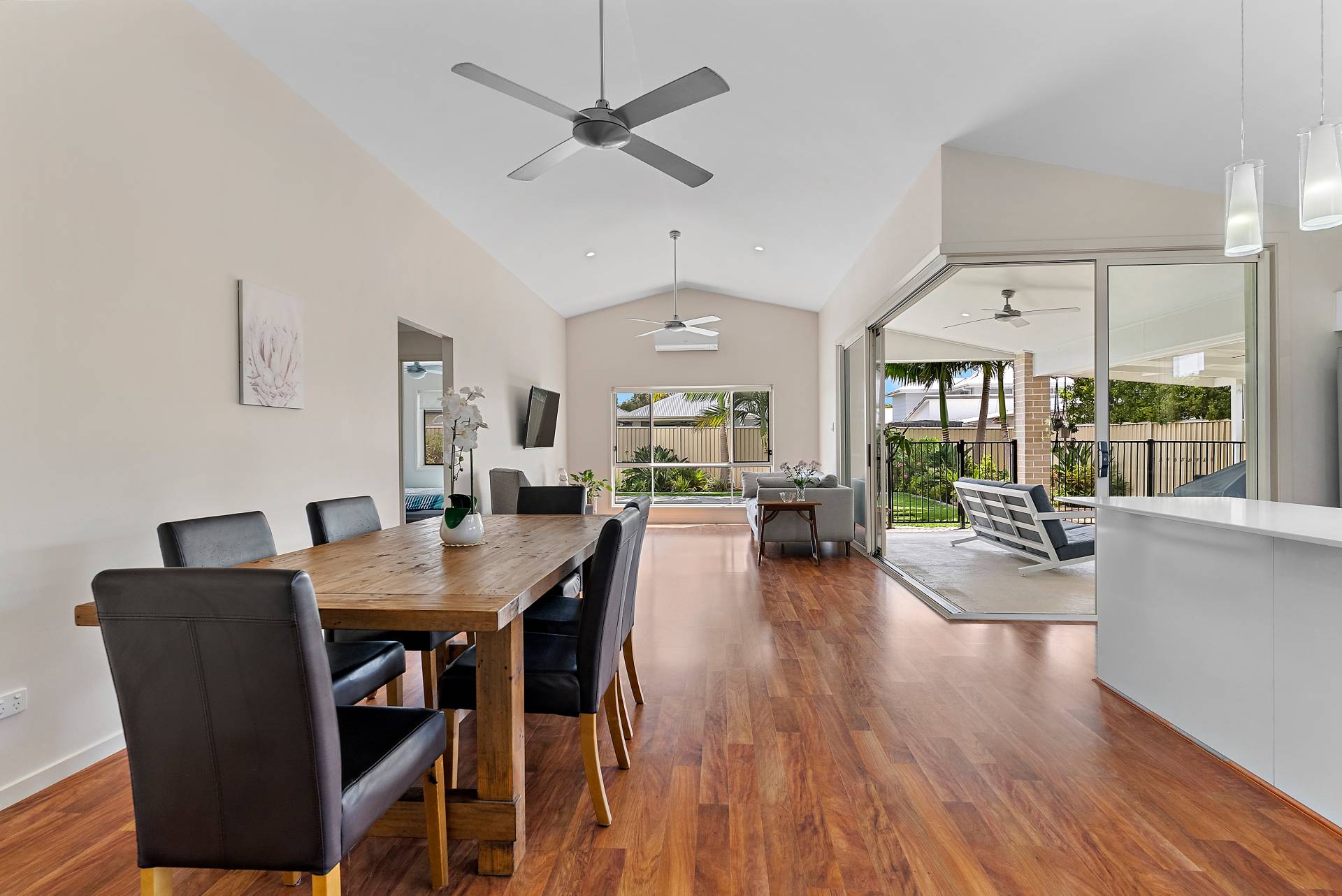 Open plan kitchen/family/dining to outdoor alfresco and backyard \