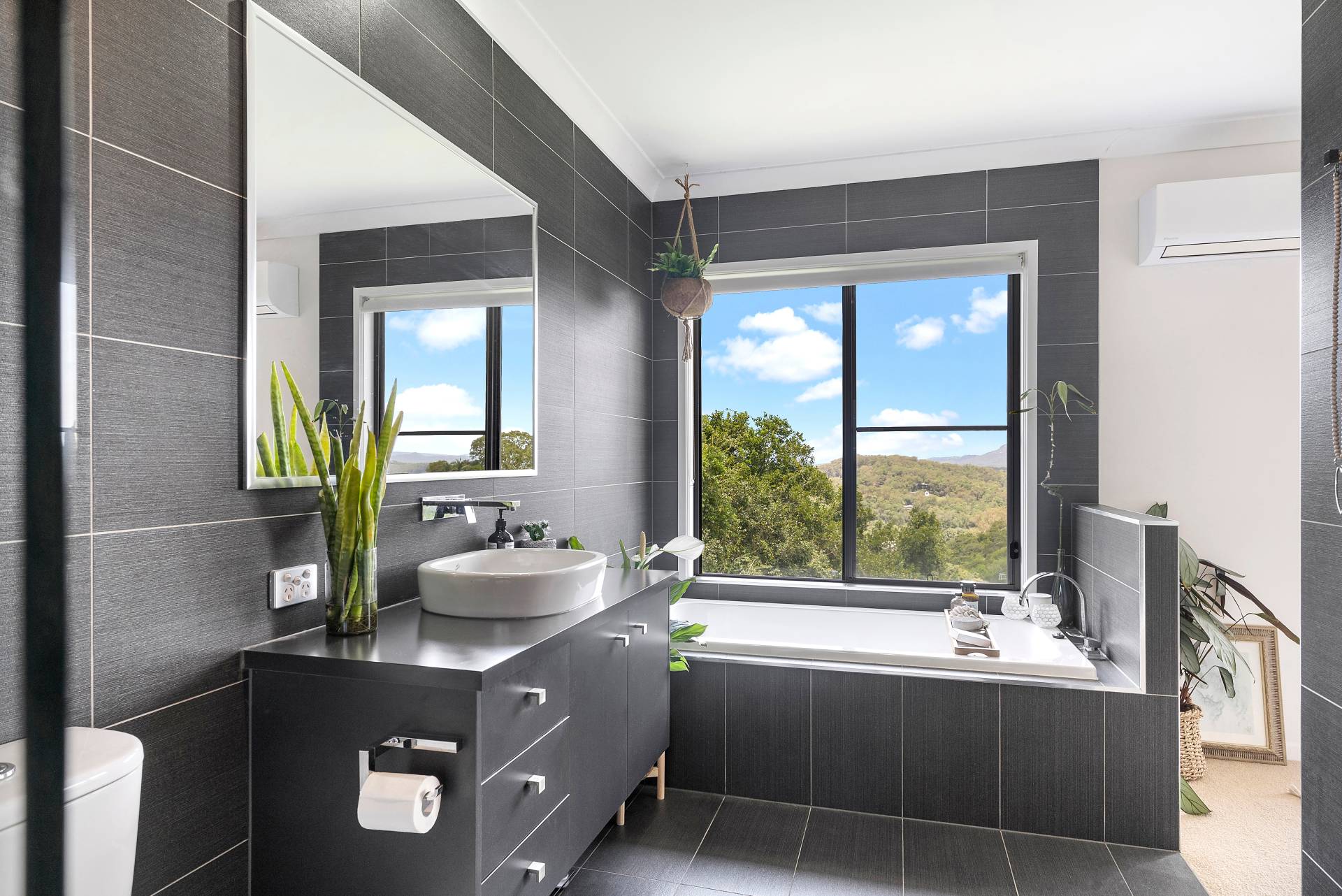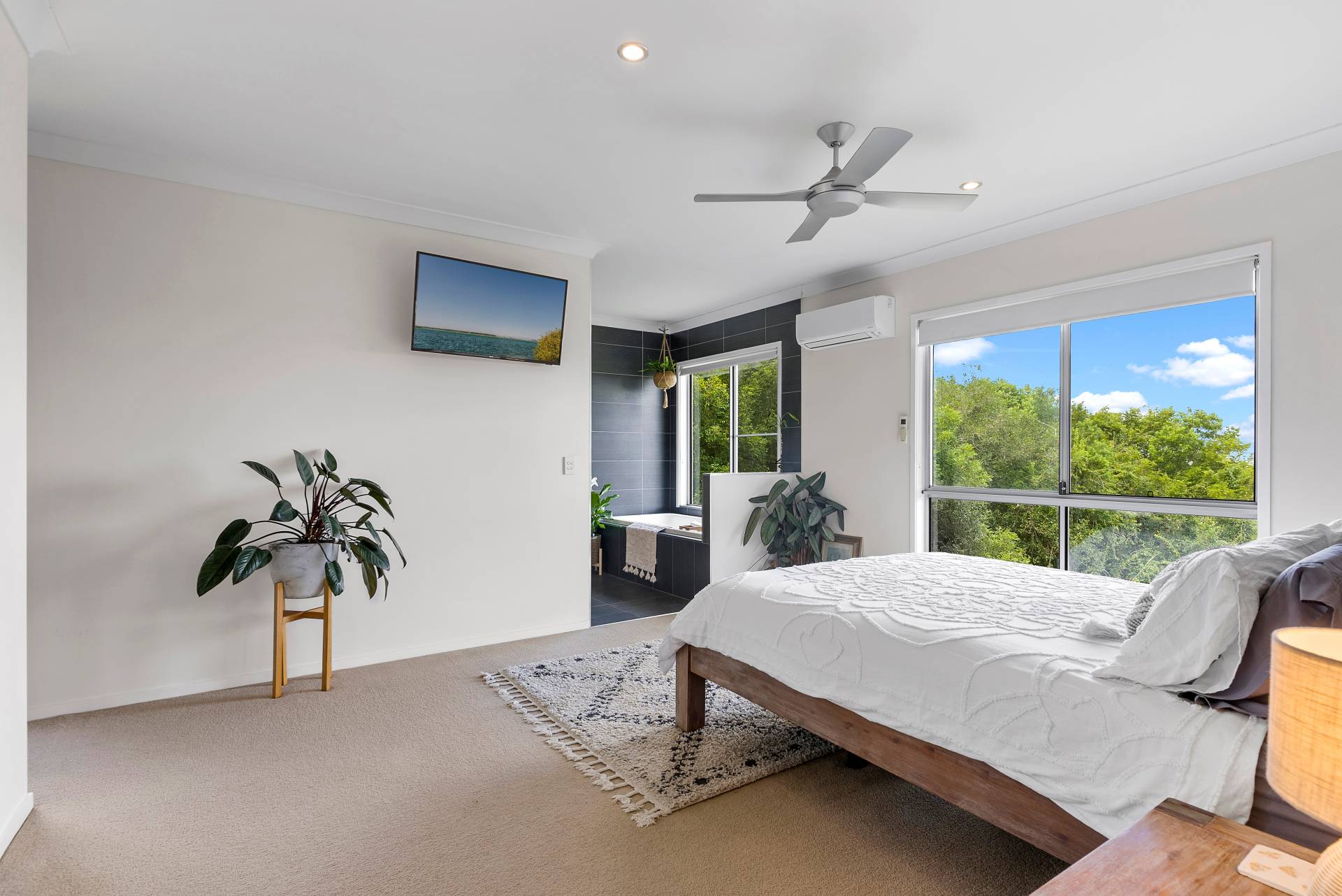 A spacious master suite includes generous walk-in wardrobe and an ensuite with a bathtub offering one of the best views in the house!