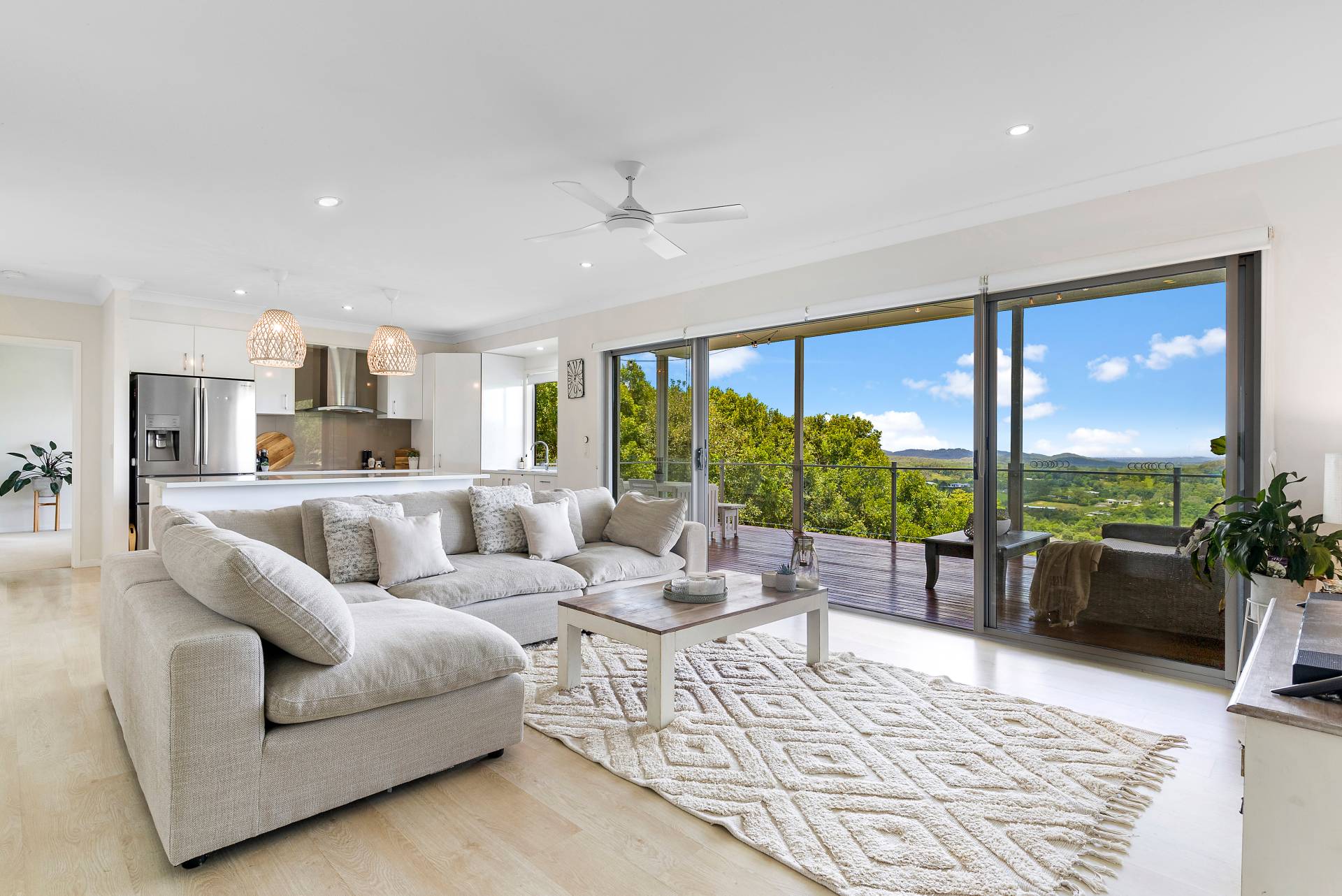 Located just three minutes' drive from Eumundi town and 15 minutes from Noosa, it's hard not to be wowed by the panoramic views stretching all the way to Mooloolaba from this immaculate single level property.