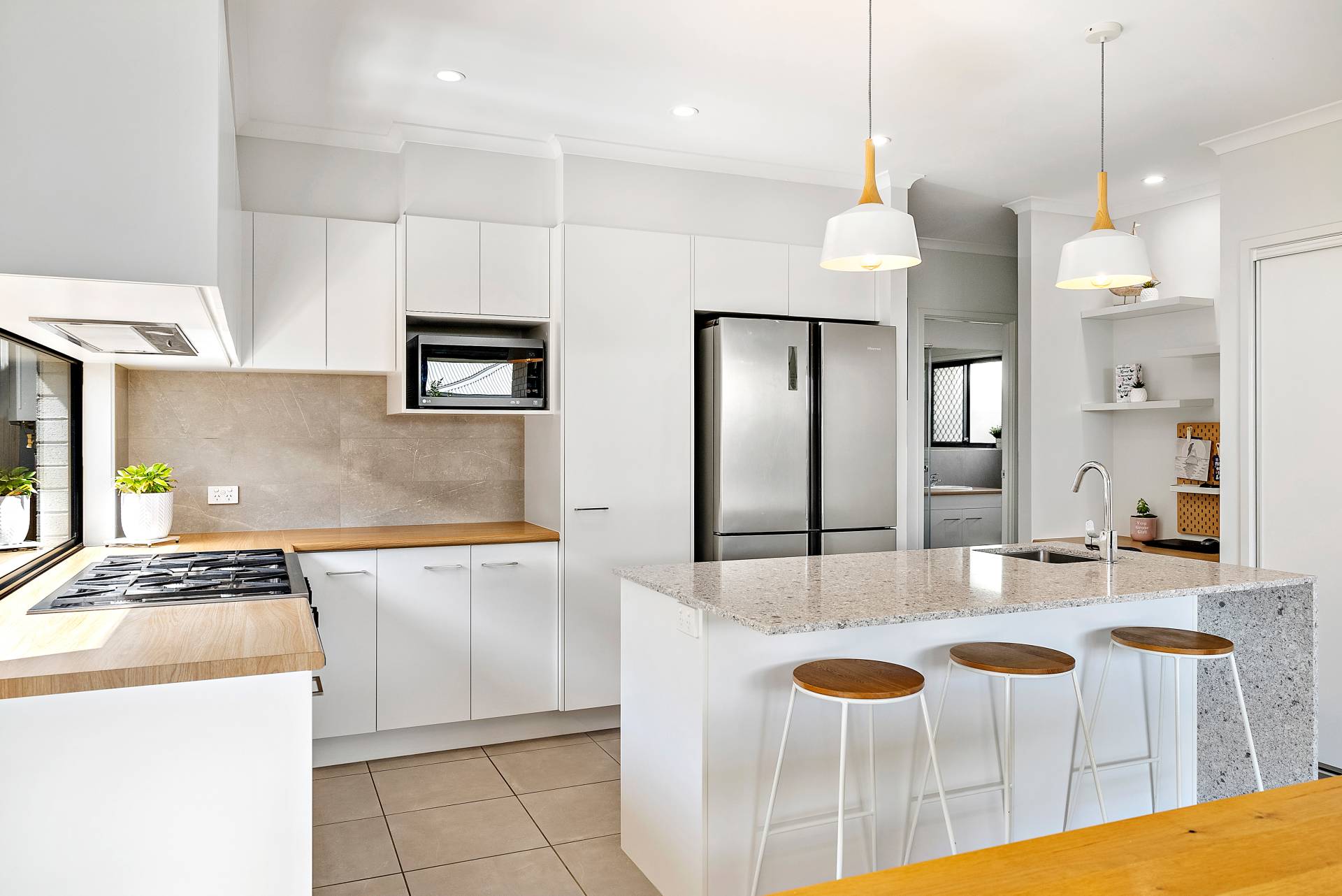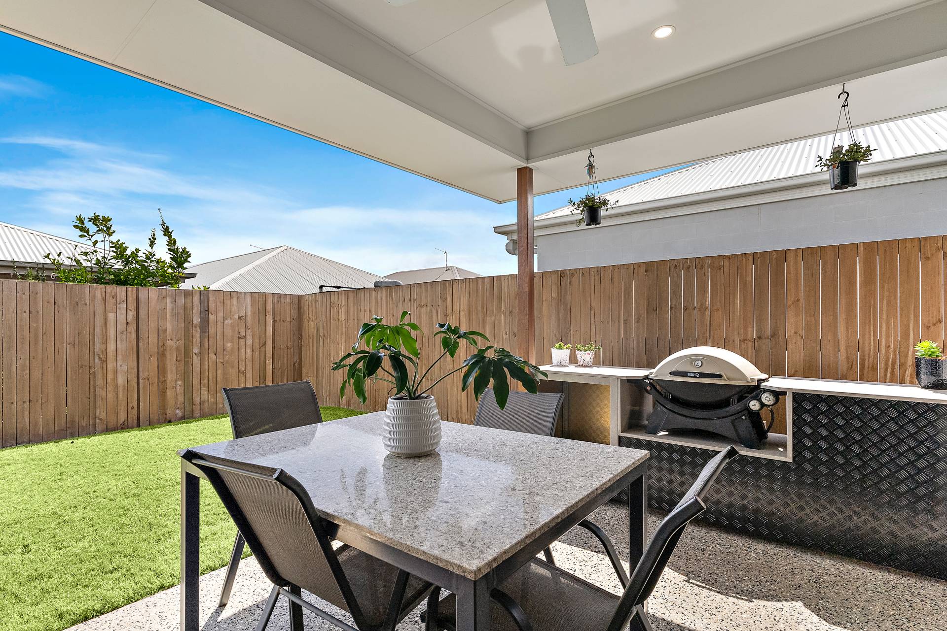 This delightful three-bedroom home is designed to maximise the Sunshine Coast lifestyle, providing its lucky new owners with style and functionality. The open-plan living space is masterfully positioned at the rear of the property with ultimate privacy and a generously sized yard and alfresco. The kitchen is the sweet heart of the home, with a stunning windowed splash back looking out to the vertical garden outside. Boasting modern appliances and a beautiful breakfast bar with stone bench top and waterfall edge, the space is perfectly framed by opulent pendant lighting. Also benefiting from a study nook, there is plenty of room for a work from home set up or ideal helping the kids with homework. The open plan is warm and inviting, with the kitchen cleverly positioned, overlooking the backyard. The adjacent dining, and spacious family lounge both open onto the covered alfresco with built-in BBQ and workbench. Sit back, relax and enjoy the fully fenced backyard, ideal for children or pets to play safely.