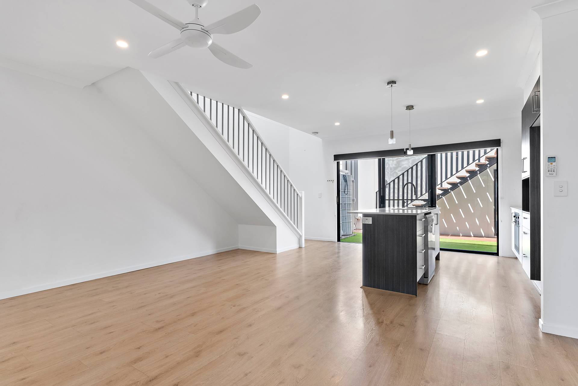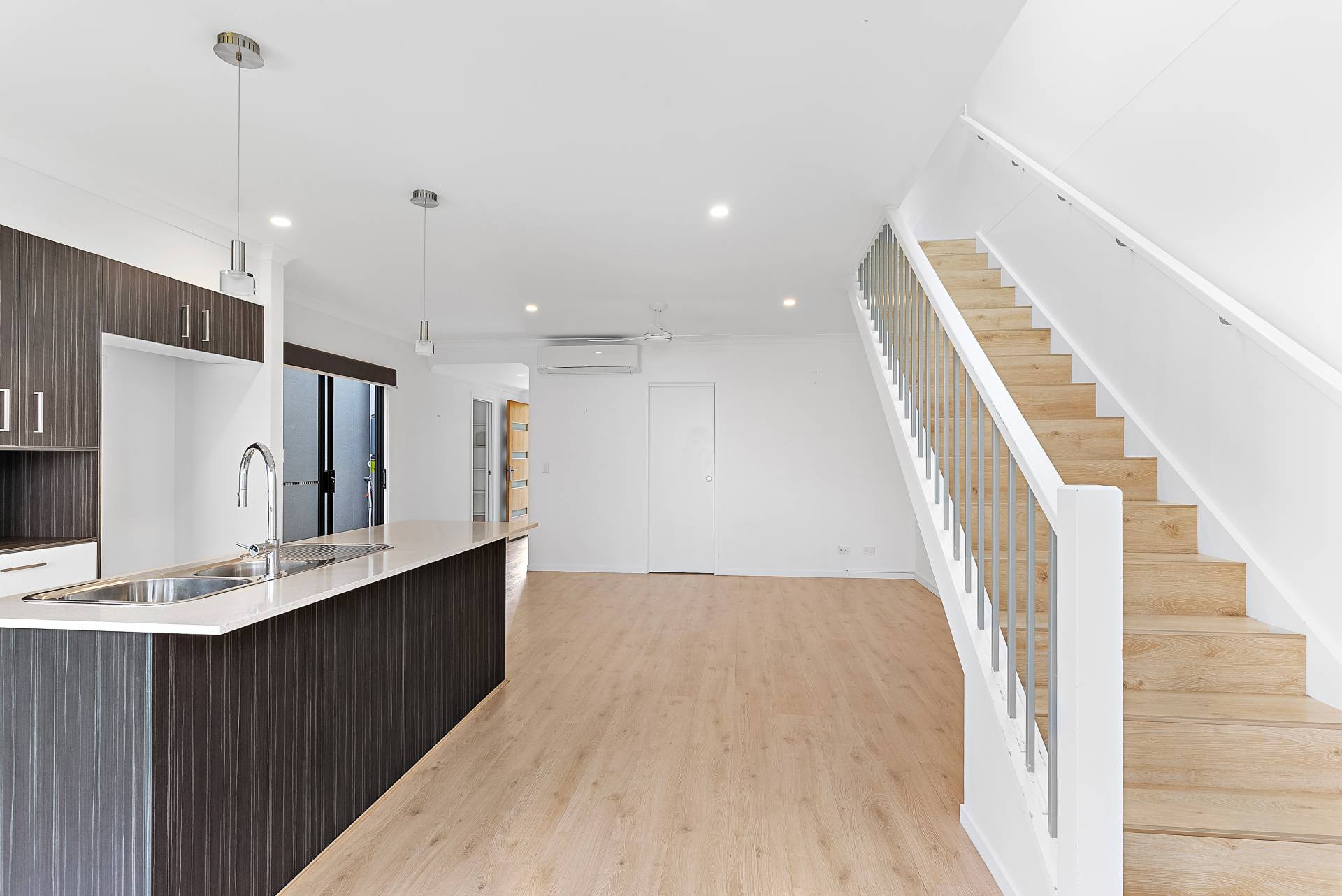 Open-plan kitchen, dinning and lounge