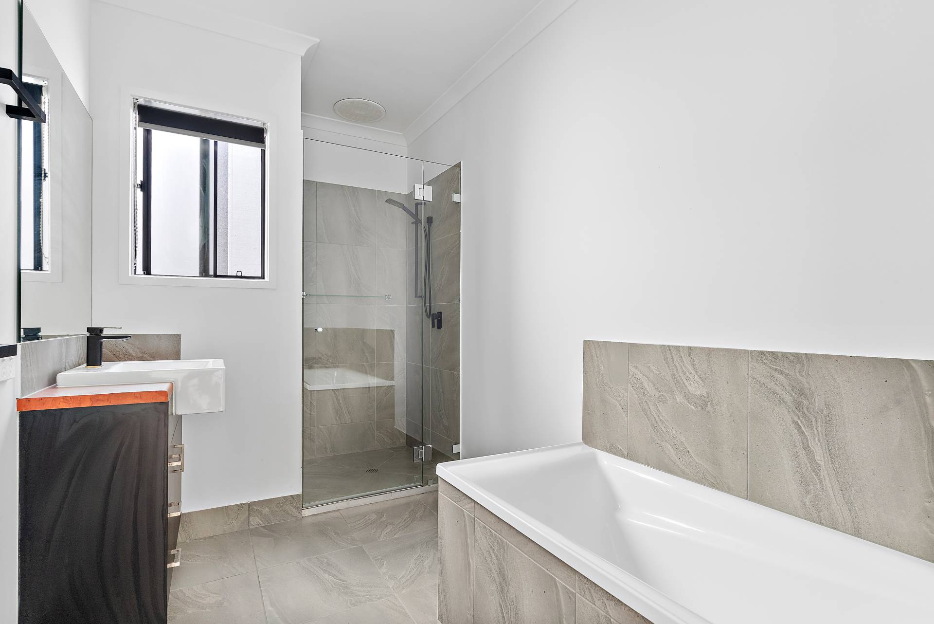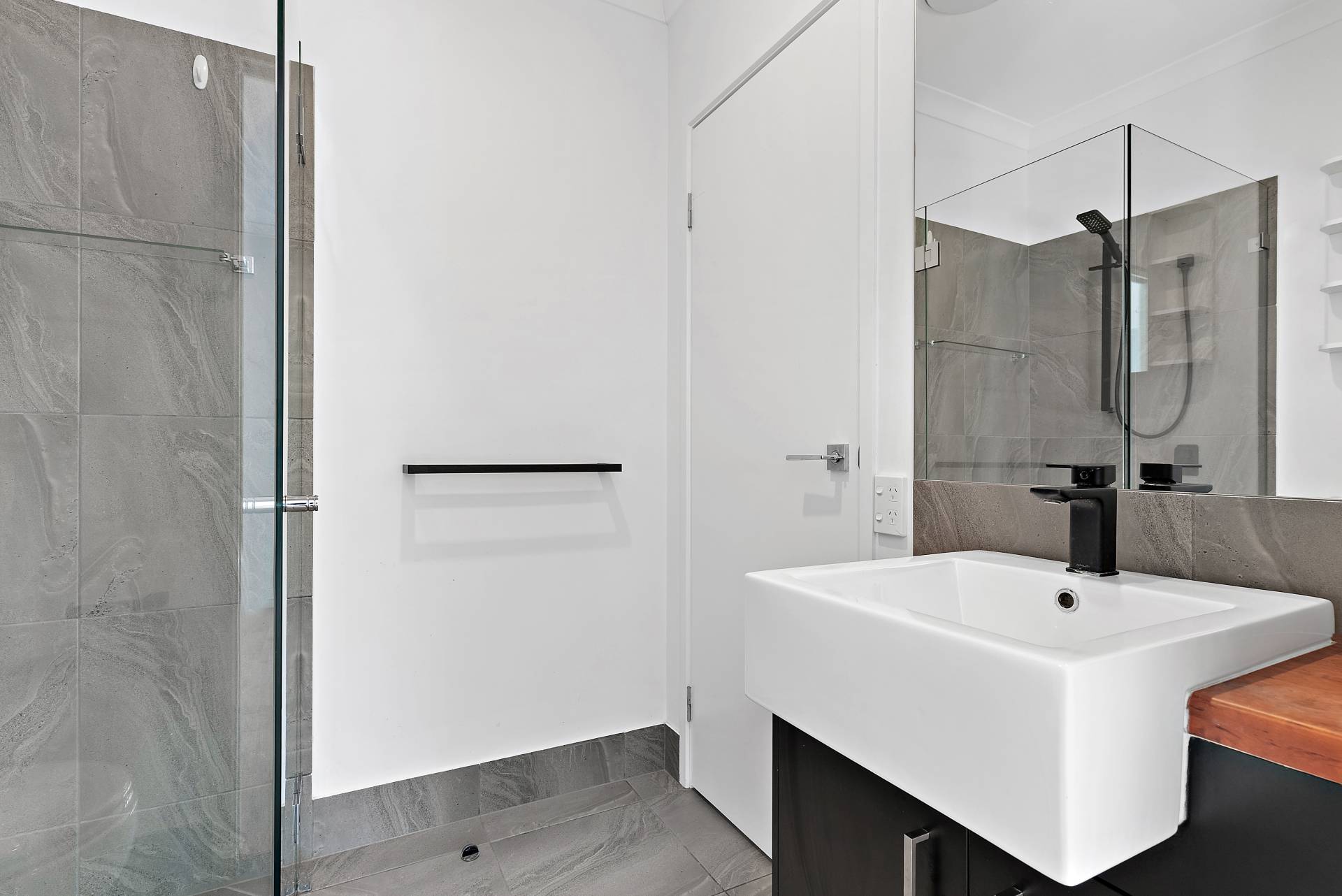 Bathrooms with black tap ware and chic tile choice