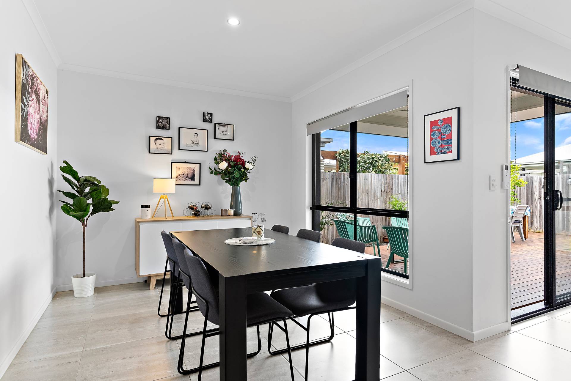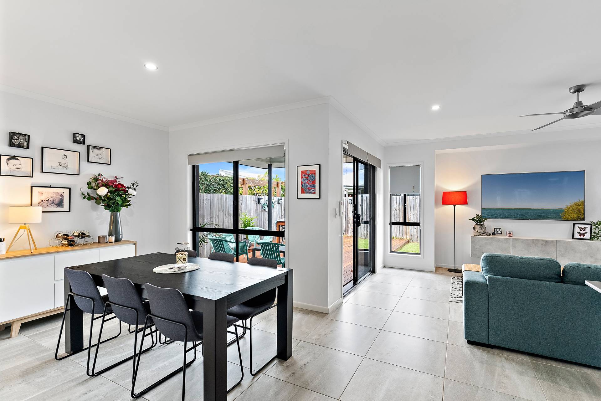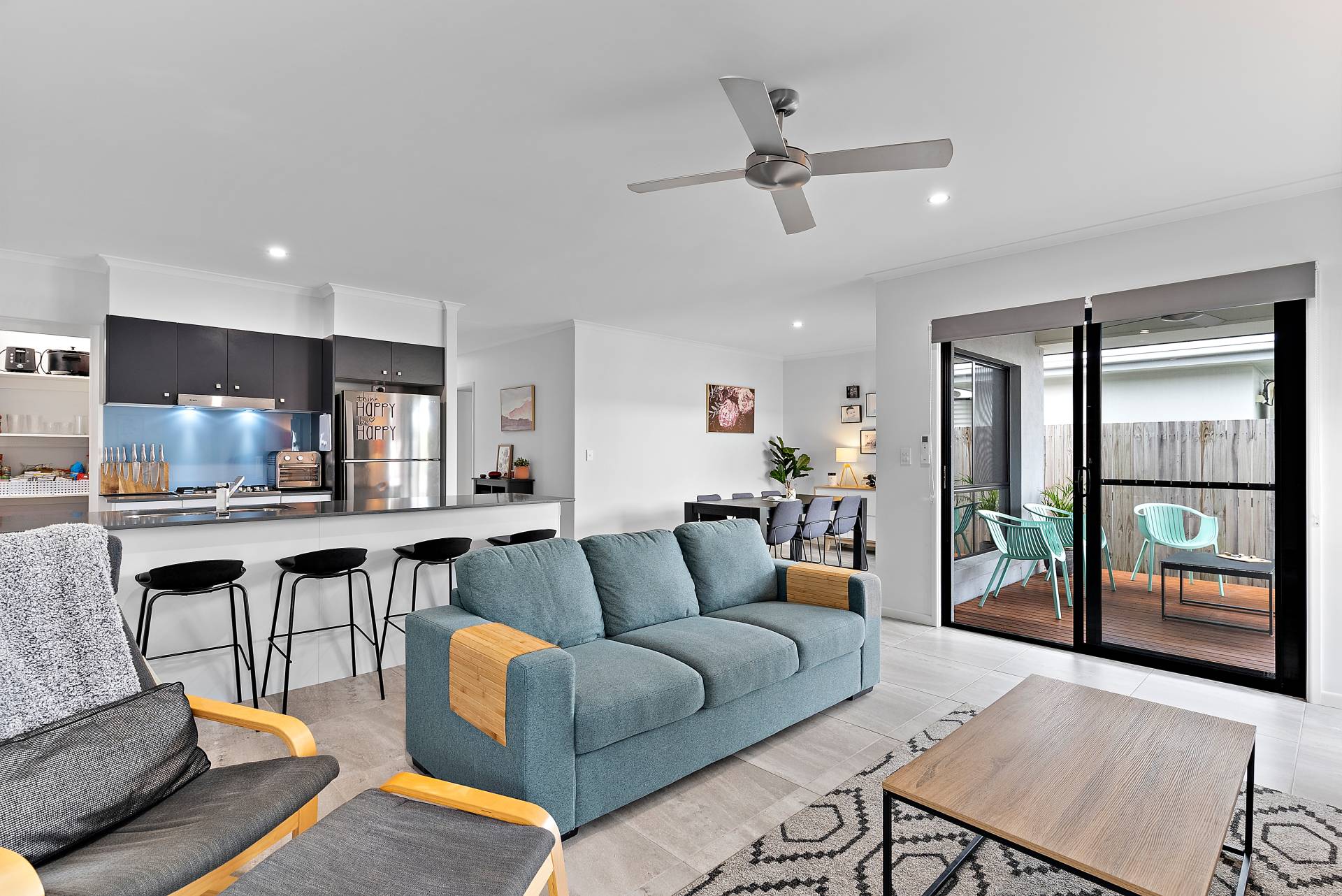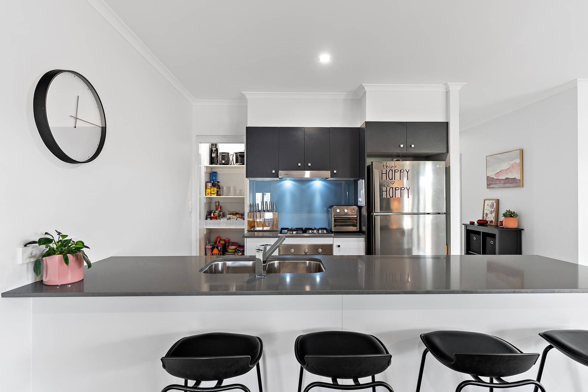 The spacious open-plan kitchen, living and dining is finished to perfection with high ceilings and a fresh colour palate, complimenting the stone-effect tiling. The stunning kitchen boasts a glass splashback, quality appliances and a large breakfast island. Set in a tranquil pocket of Baringa, this beautiful three bedroom home offers an enviable lifestyle.