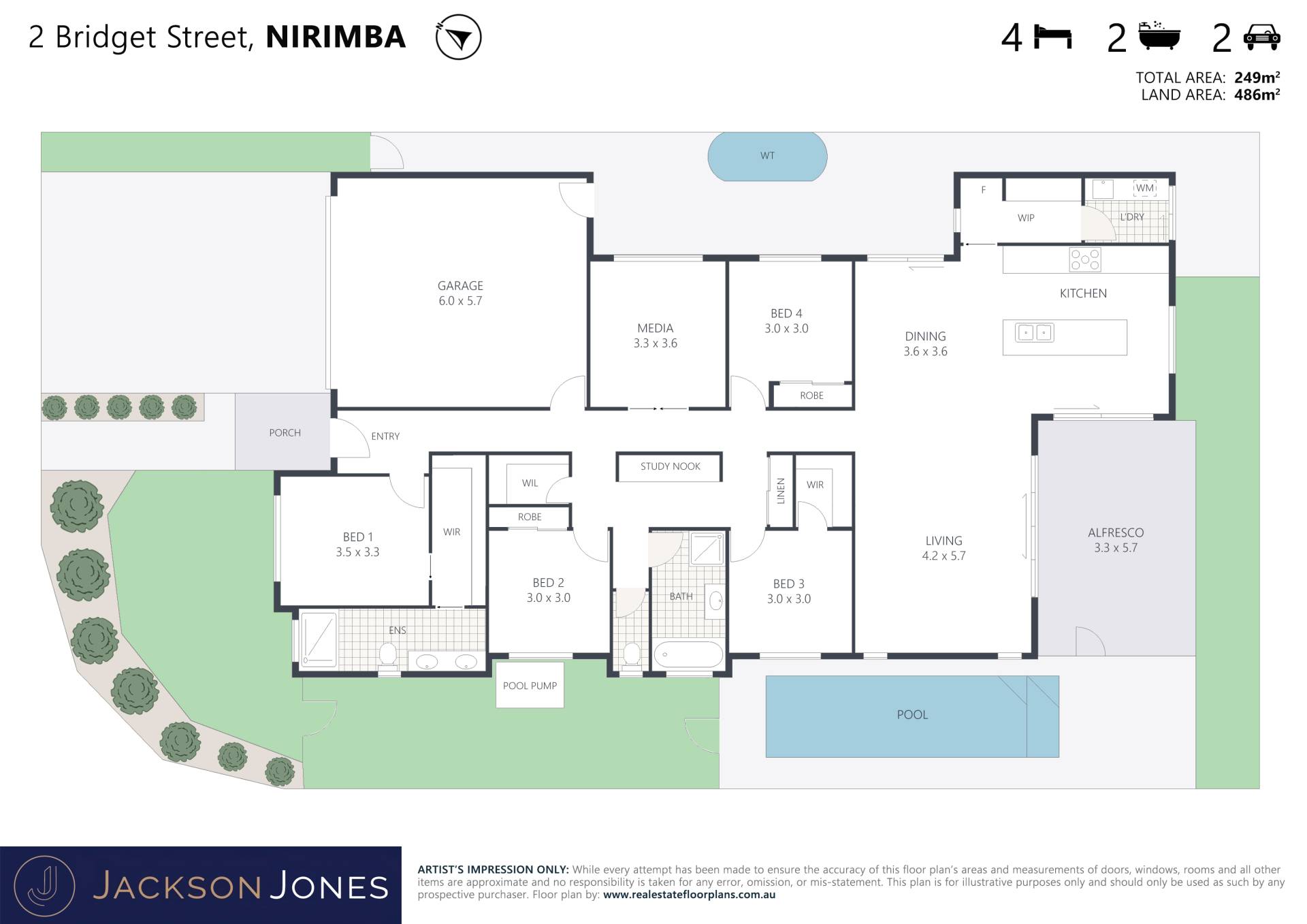 2 Bridget Street makes a lasting first impression! From first approach this picturesque property boasts elegance and charm with a weatherboard facade, private front garden with lush tropical greenery and the front door beautifully framed by lanterns under a covered porch. Impeccably presented, this property boasts an excellent floorplan with comfort and quality the forefront of design. Light-filled and breezy throughout, the open-plan kitchen, living and dining flows effortlessly with a crisp white colour palate and modern finishes. A sleek modern kitchen boasts a subway tile splash back and black hardware. Reconstituted stone bench-tops compliment the large breakfast bar with in-built sink and black tap-ware, with by opulent pendant lighting. Quality stainless-steel appliances including 900mm oven with 5 burner gas cooktop and range and dishwasher, make this an ideal place for all of your culinary creations. Delight in ample cupboard space as well as the large walk-in pantry and utility room with direct access to the drying area outside. The spacious lounge opens onto a large alfresco, for a perfect flow of indoor/outdoor living. Cool off in the stunning pool or simply unwind by the edge and enjoy this magnificent property.