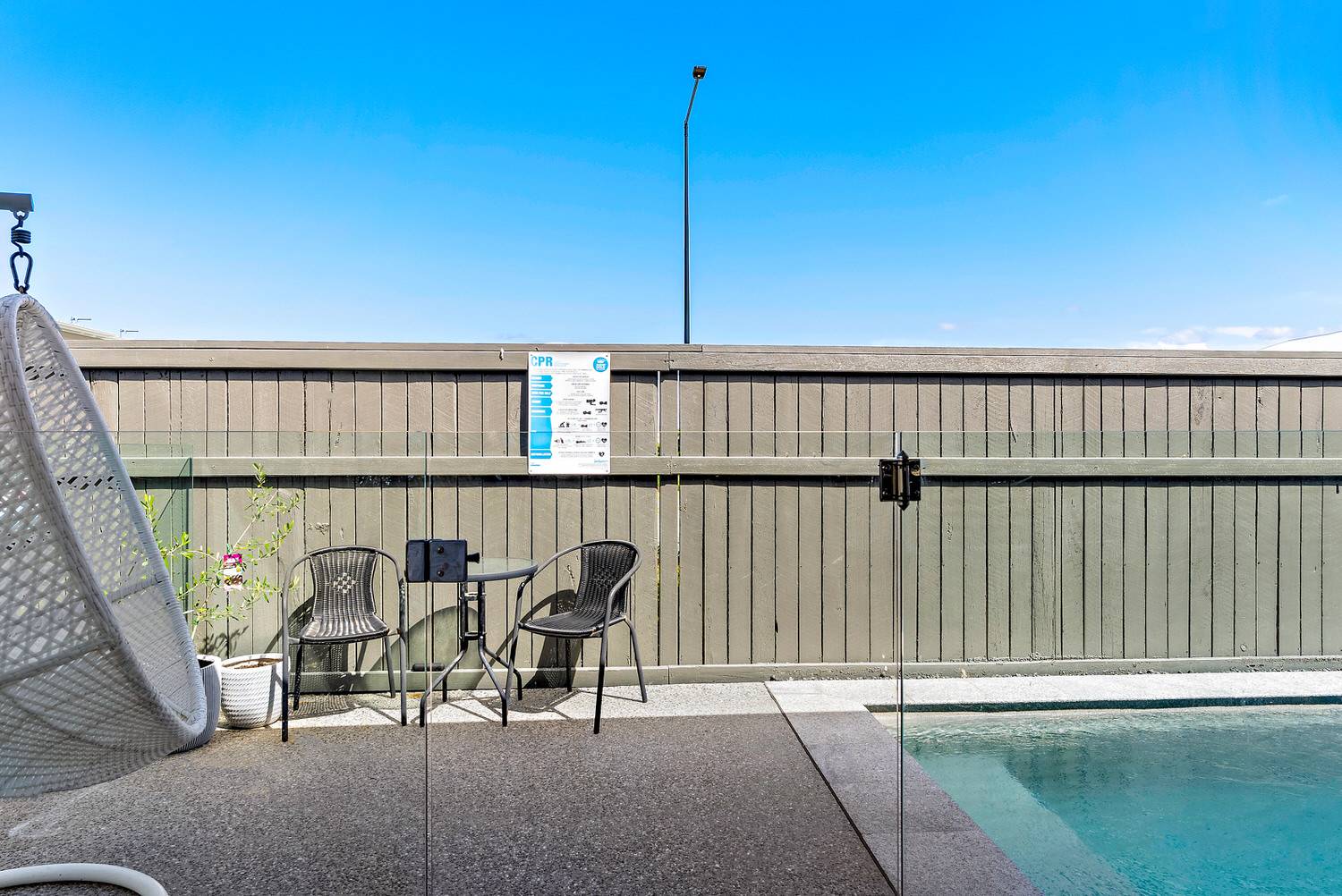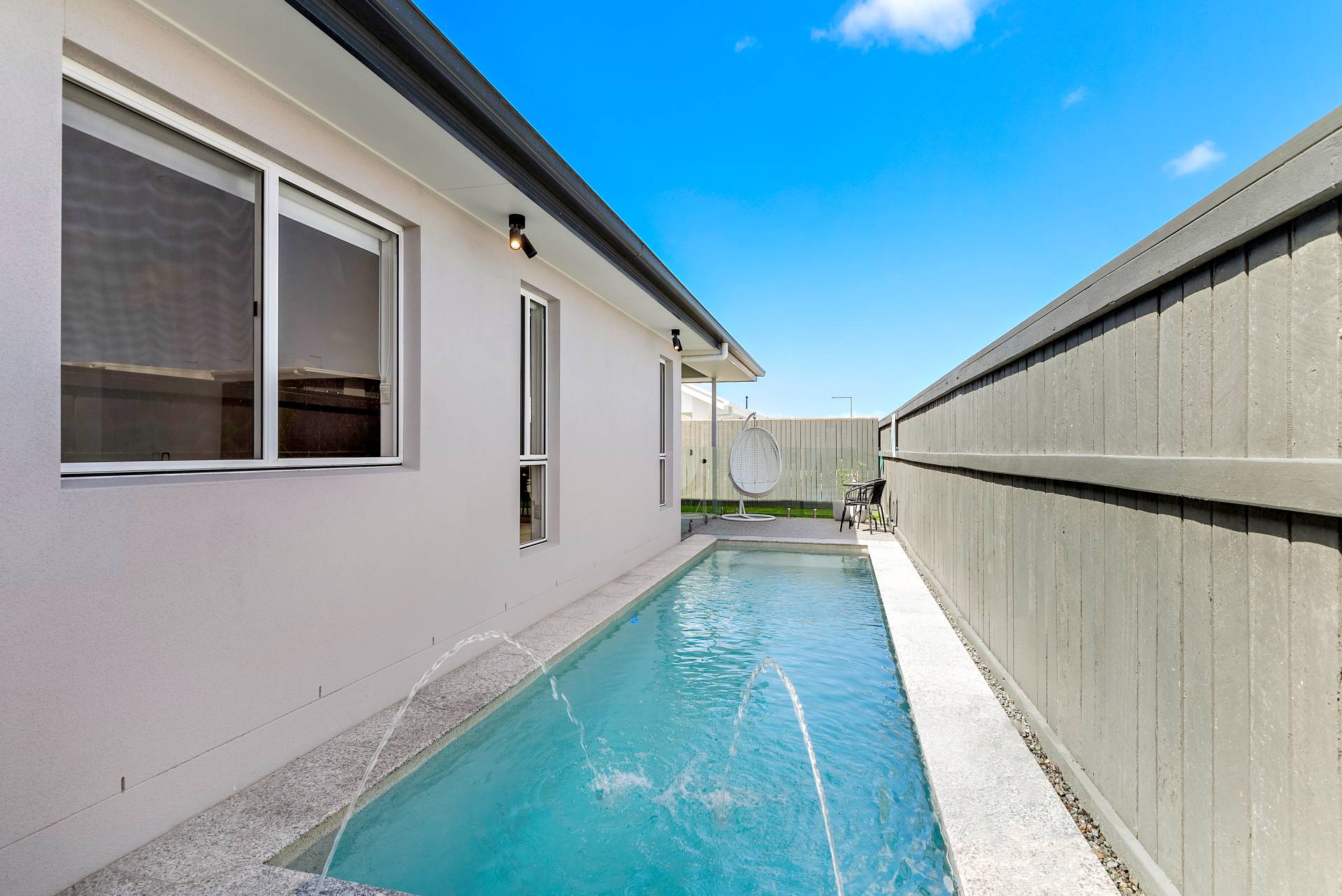Courtyard Fenced Outdoor entertainment area in-Ground Pool Water Tank Grey Water System Solar Panels Study