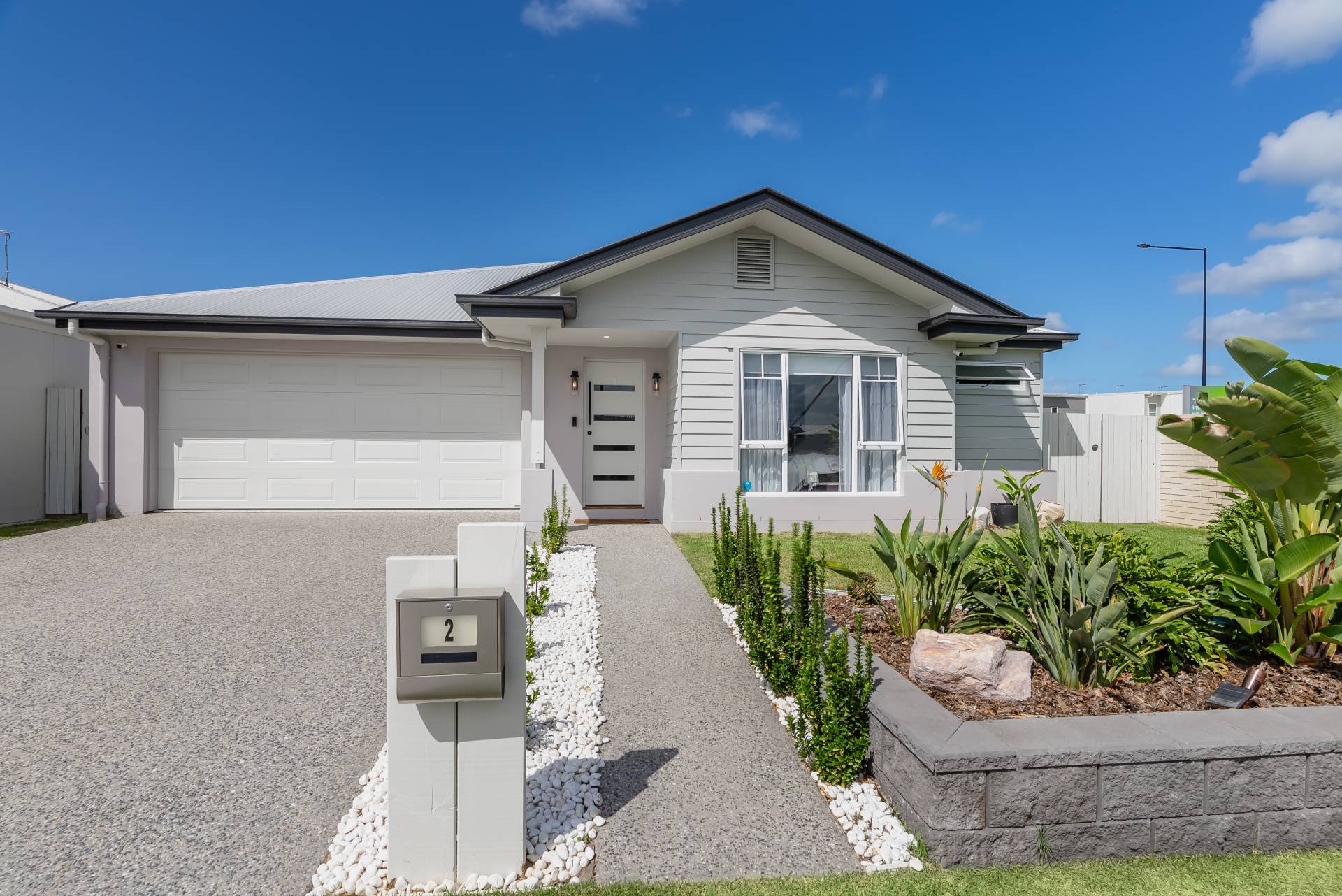 - Weatherboard façade with established garden