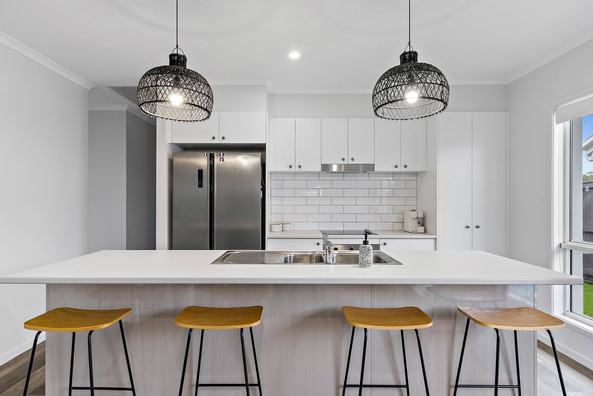 Kitchen with quality appliances, ample cupboard space and stunning pendant lighting