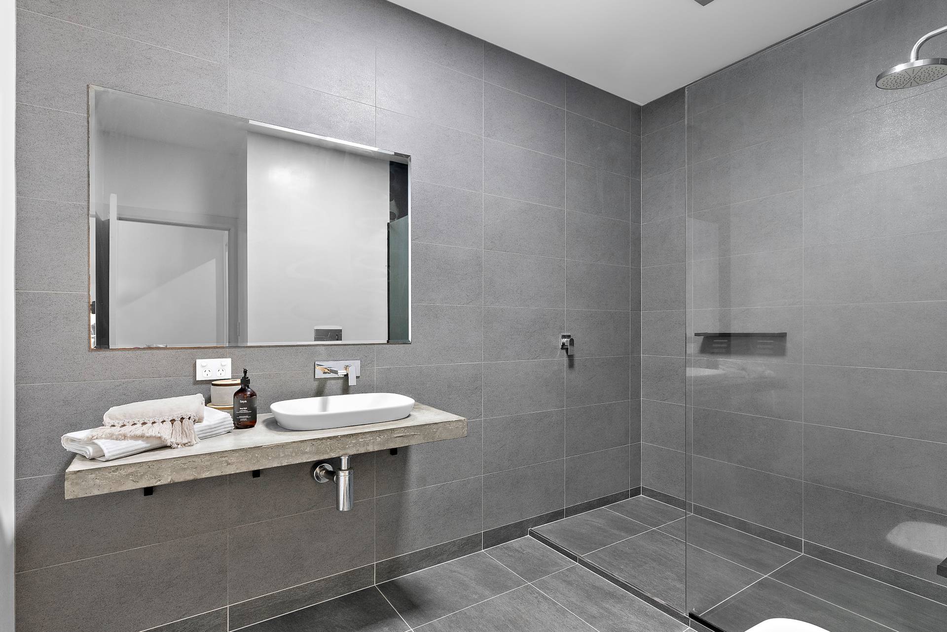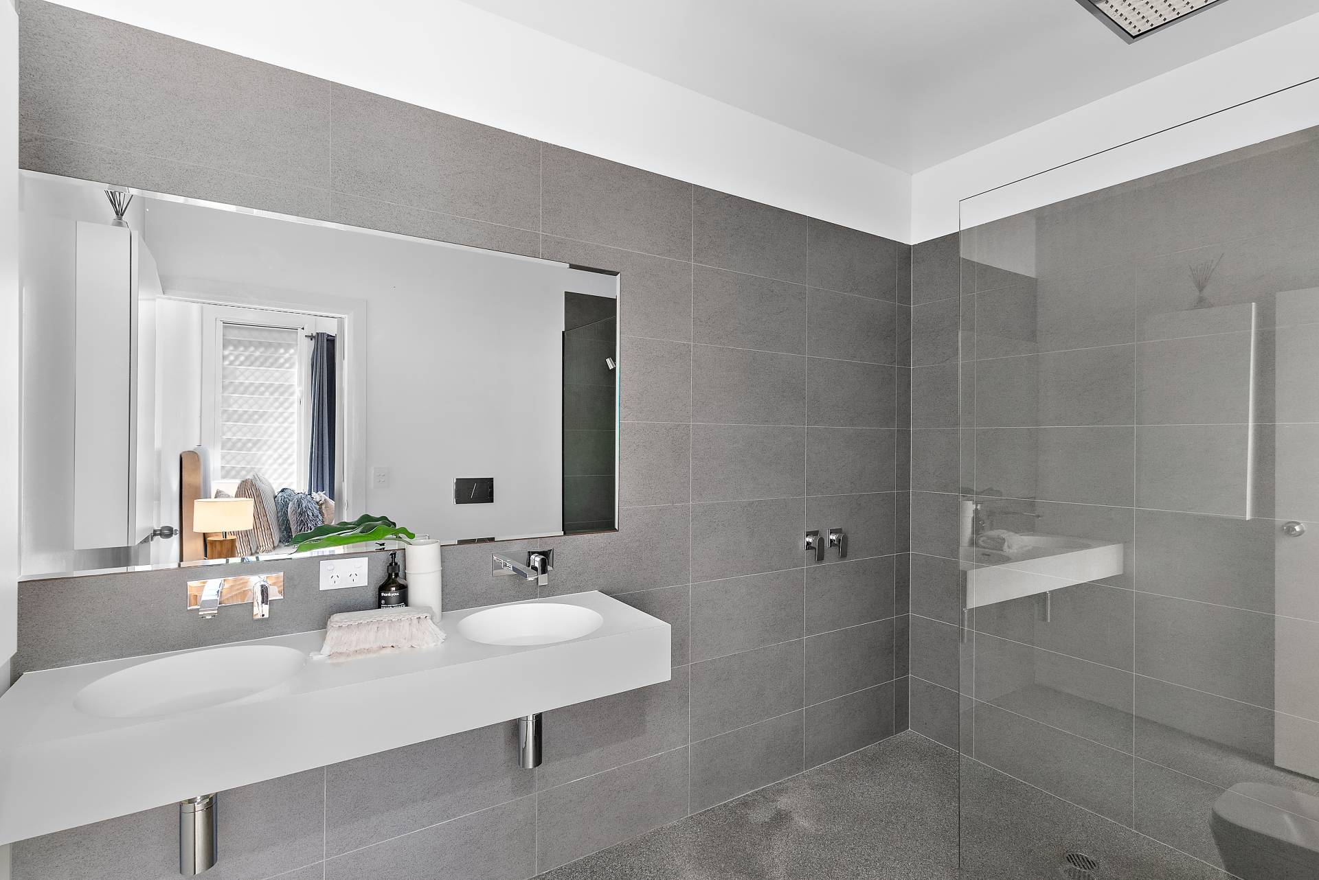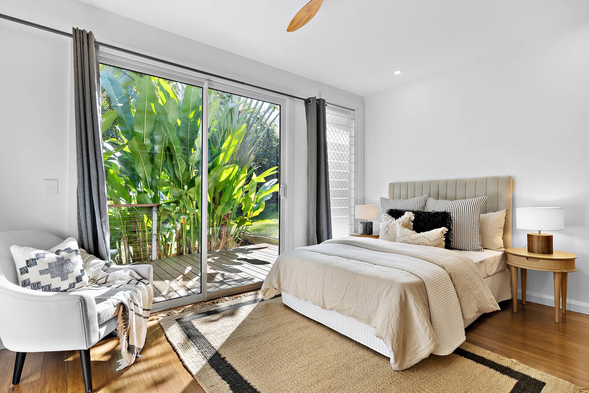The light-filled master bedroom has its own verandah access and boasts a chic ensuite with double sinks and huge rain shower.