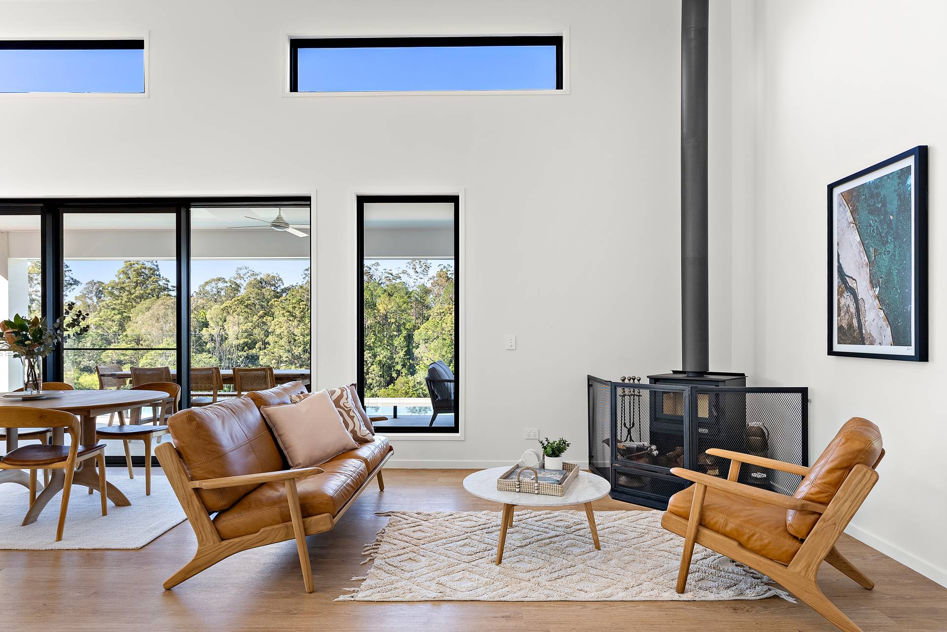 This brand-new home boasts light-filled open spaces, vaulted ceilings, superior finishes and a stunning 11m pool - all in a peaceful location overlooking trees and rolling hills.