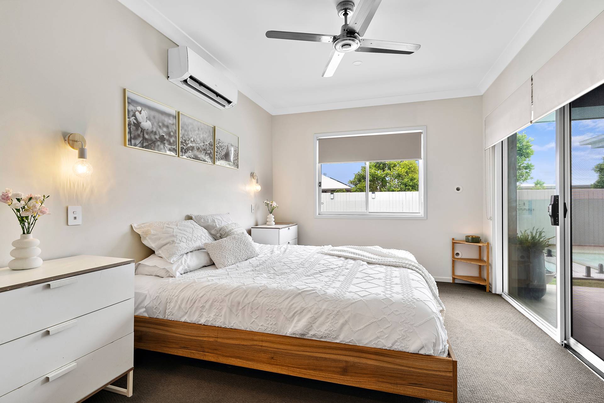 Bedrooms two, three and four equipped with ceiling fans, roller blinds and built in robes