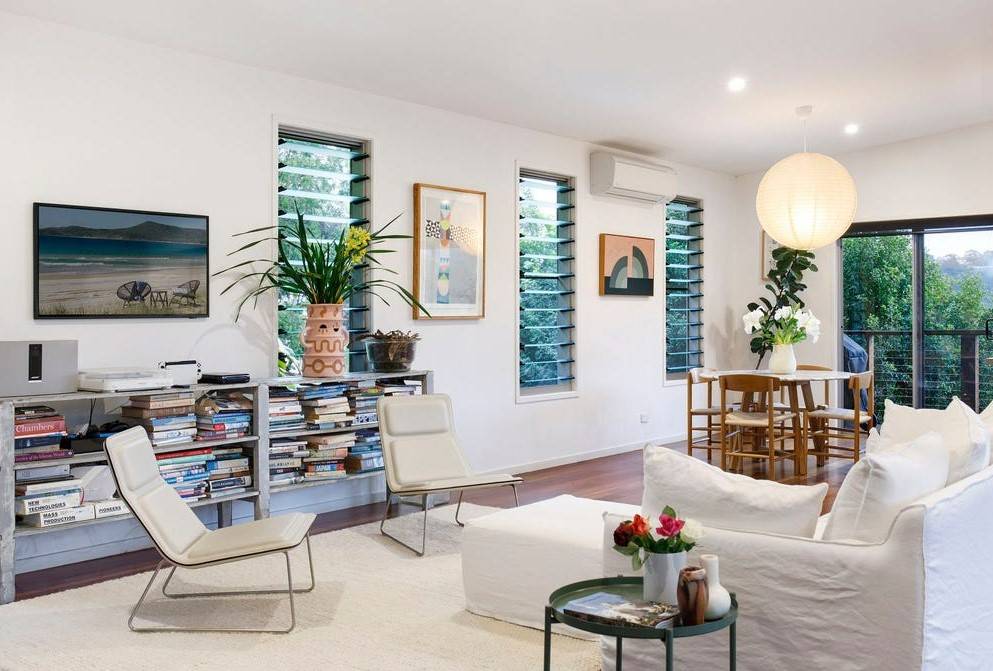 A soaring, light-filled entryway between the home's two pavilions provides a hint of what awaits inside. One pavilion contains the expansive open plan living zone, where a blend of rich, beautiful timbers and crisp white finishes create a warm, stylish aesthetic. Built for a seamless year-round indoor/outdoor living experience, this area features plenty of glass to capture the cooling cross breezes and exquisite outlook. The wraparound timber deck provides an idyllic spot for a quiet drink while enjoying the fresh air, tranquility and mountain views - which are particularly spectacular at sunset. Entertainers will also appreciate the immaculate north-facing kitchen, with its breakfast bar, gas cooking, dishwasher and frameless glass windows.