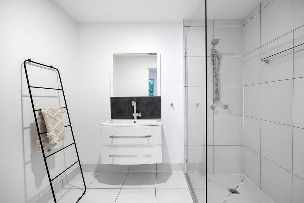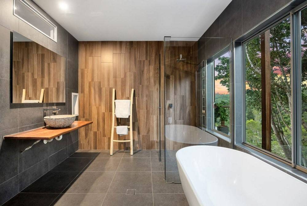 Pavilion two houses three generous bedrooms, including a master suite complete with walk-through-robe. This connects to a two-way bathroom with the feel of a luxurious rainforest spa retreat, thanks to the beautiful tilework, timber feature wall, and deep freestanding tub which looks out over the forest.