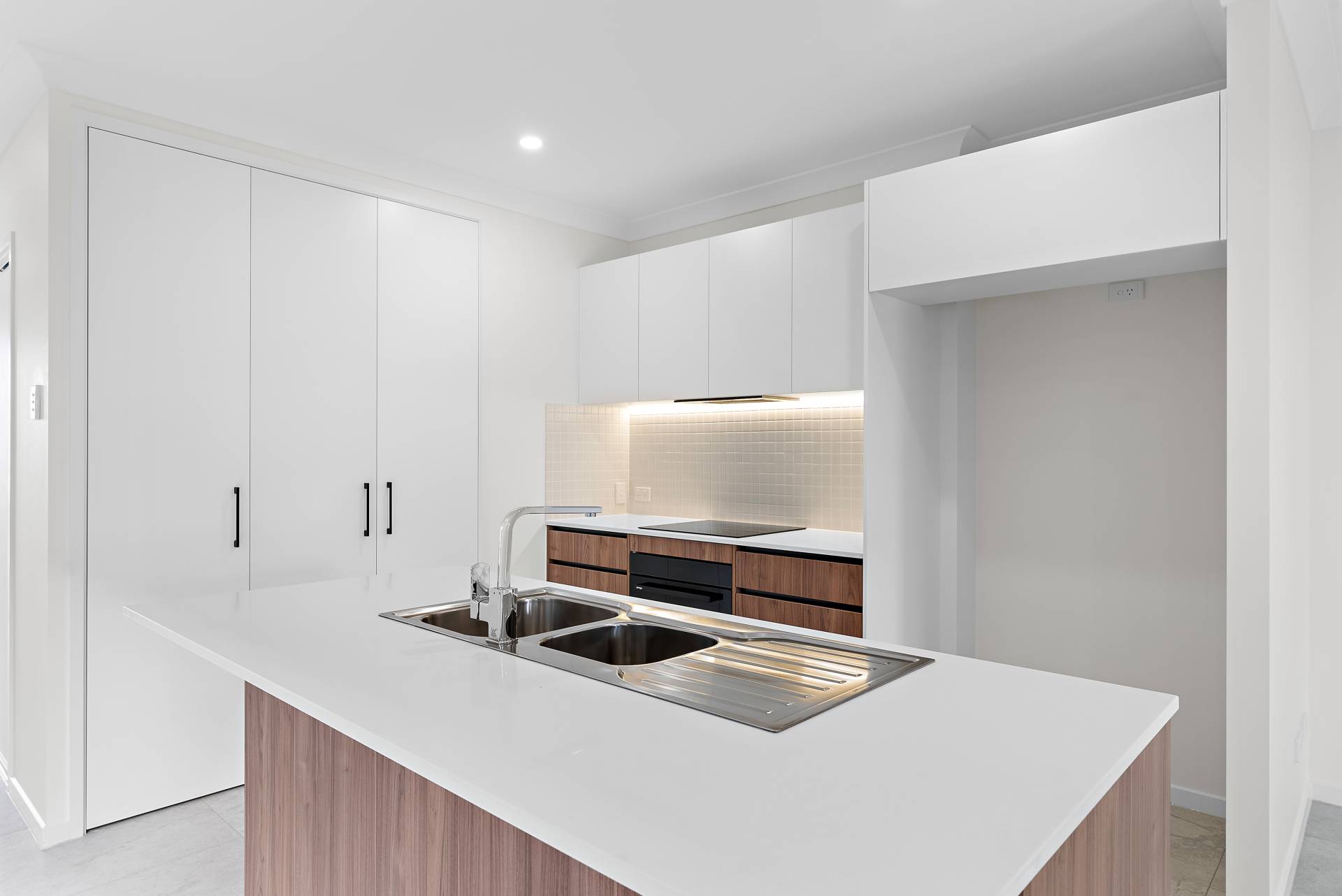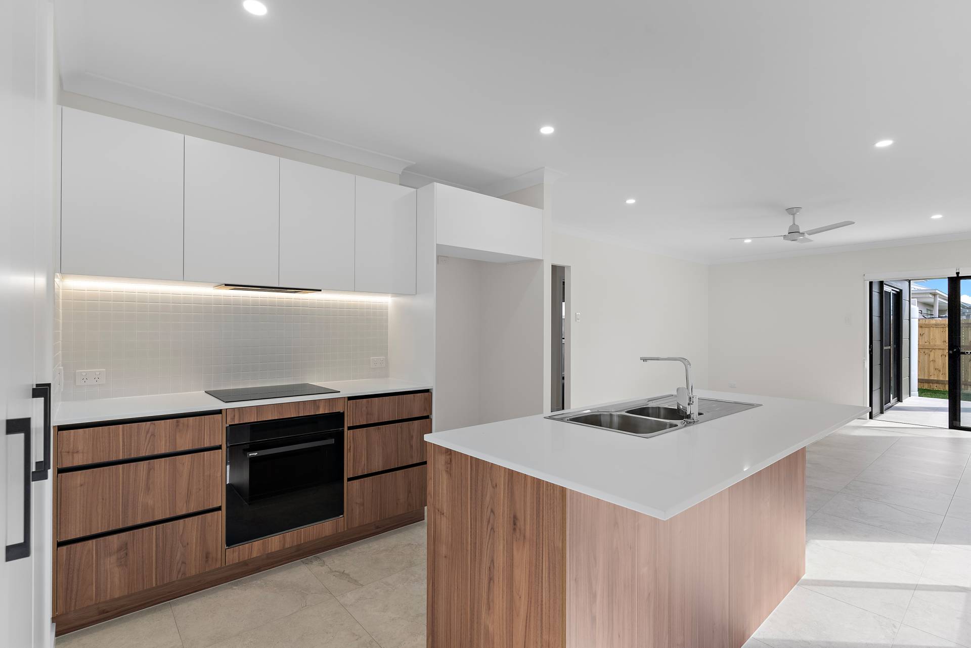 - Well appointed kitchen with LED splash back lighting, large pantry with power, integrated dishwasher, plumbed fridge space, quality appliances, inbuilt sink, reconstituted stone benchtops and bespoke cabinetry