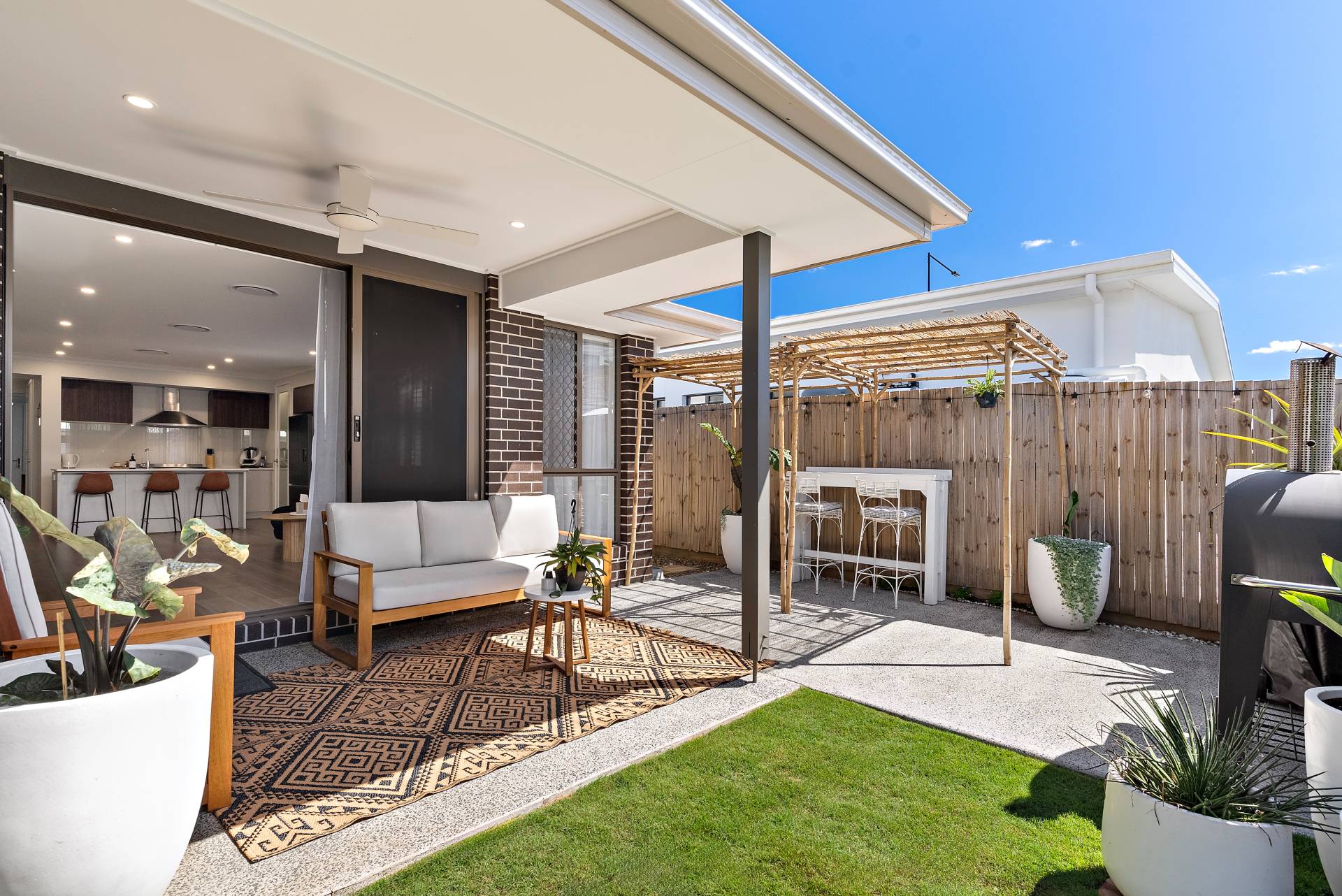 - Extended exposed aggregate slab perfect for a spa or BBQ area
