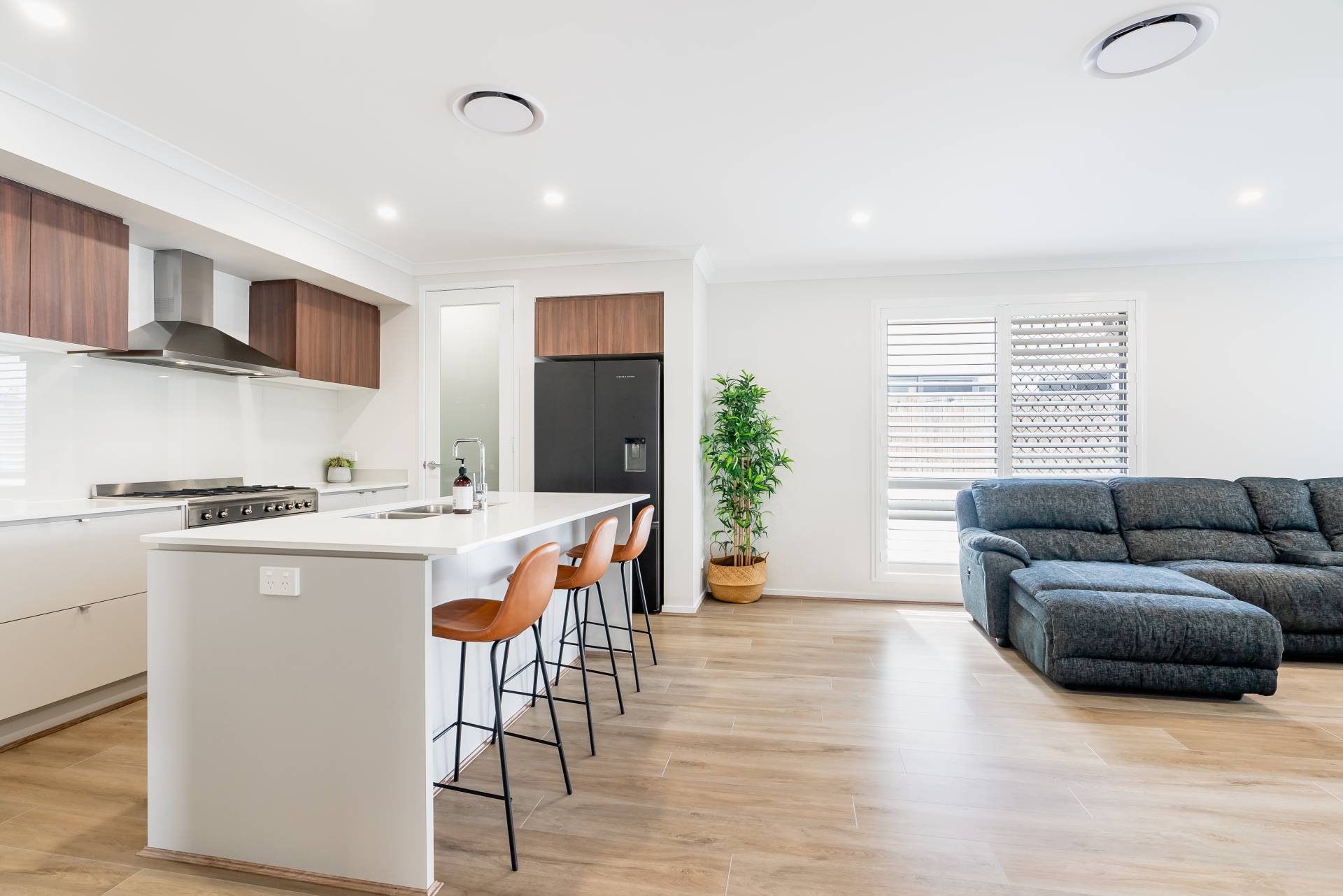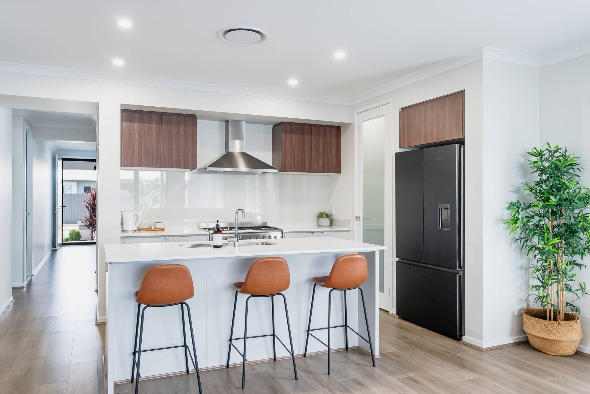 - Modern entertainers kitchen with stylish SMEG appliances, large kitchen island, reconstituted stone bench-tops and walk in pantry ideal for culinary enthusiasts