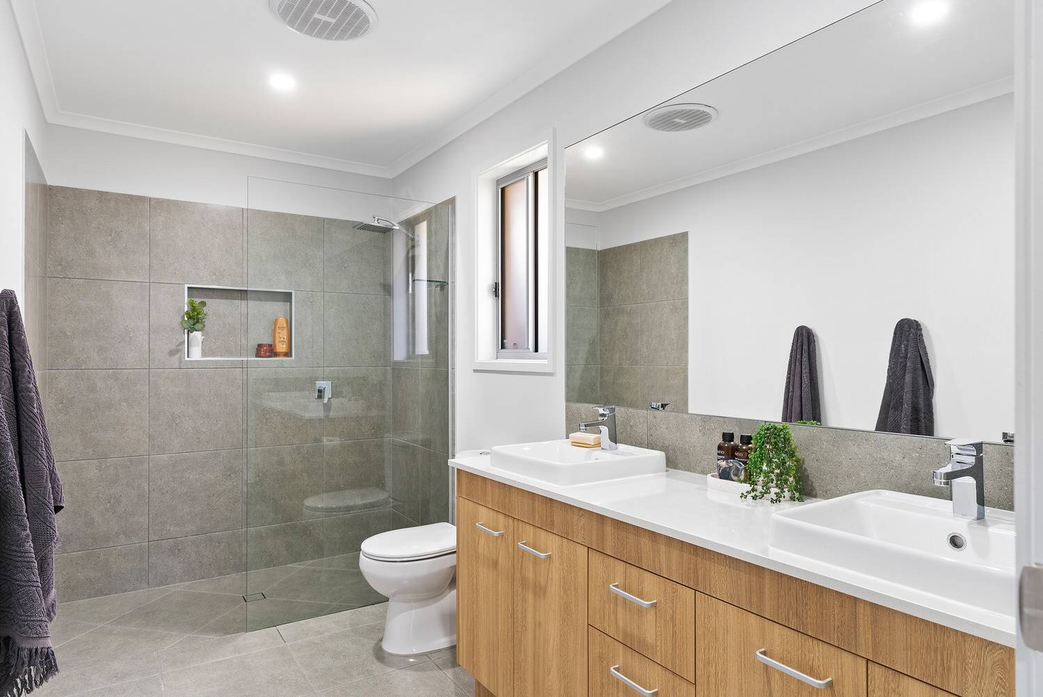 The master bedroom is a true retreat, featuring a generous layout, floor-to-ceiling sheer curtains and VJ panelled feature wall. This suite is complete with walk-in closet, and a large en-suite bathroom boasting luxurious shower and dual vanities. Three additional bedrooms are spacious and bright, offering plenty of room for family members or guests. Ideally located by the children's bedrooms, the second living space is multi-functional and can be used as a family room, games or playroom. The main bathroom is also conveniently positioned and boasts a separate powder room with sink and feature VJ panelled feature wall.