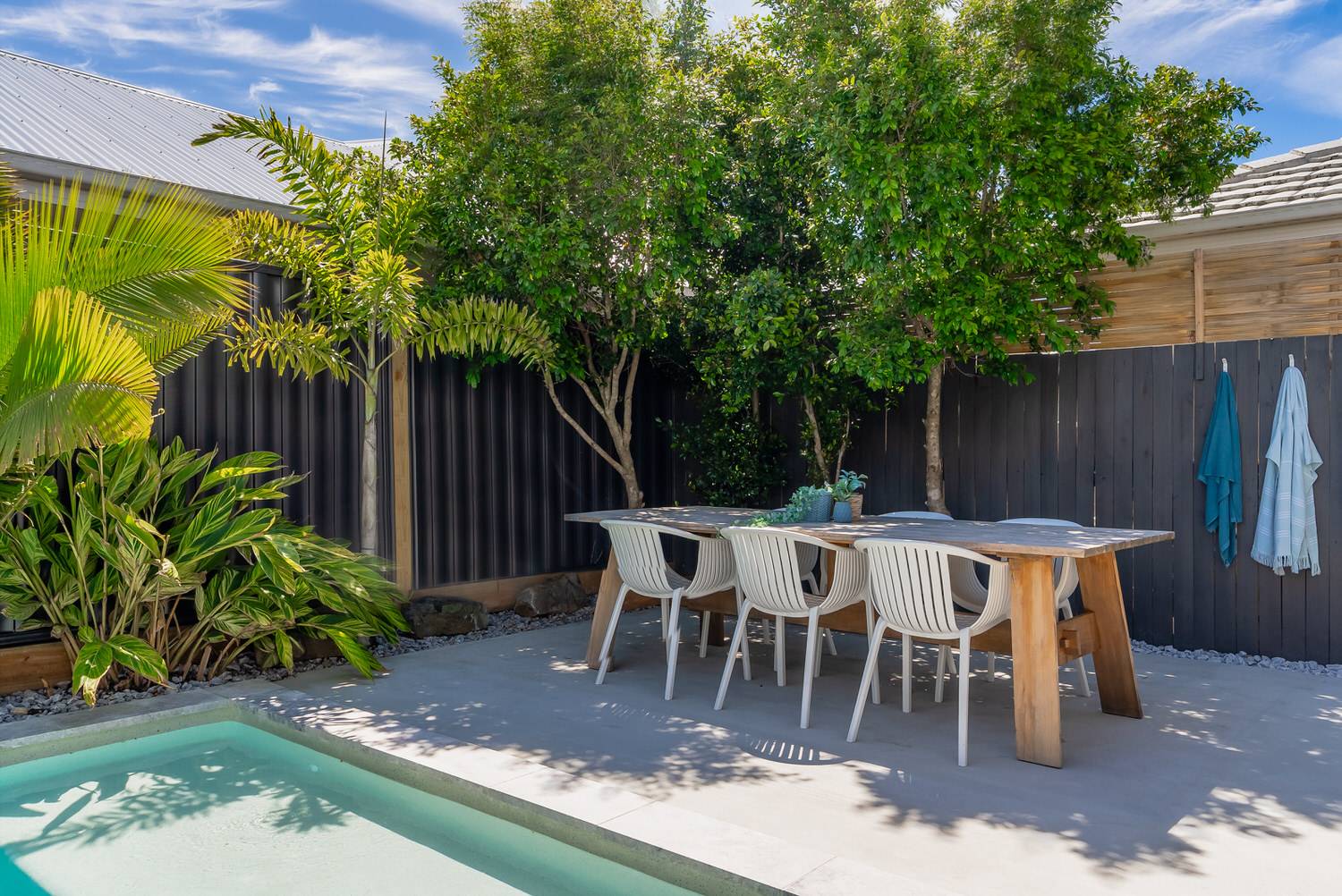 Dressed with soft, floor-to-ceiling sheer curtains the lounge and dining is a haven for relaxation offering generous spaces and a beautiful pool aspect. Step outside into your own private oasis, where you'll discover multiple outdoor living areas including a covered, decked alfresco and poolside dining. Beautifully landscaped with established plants and lush greenery, this is the perfect backdrop for the refreshing swimming pool. Whether you're lounging poolside, hosting summer barbecues, or simply enjoying the tranquility of the surroundings, this outdoor space has something for everyone.
