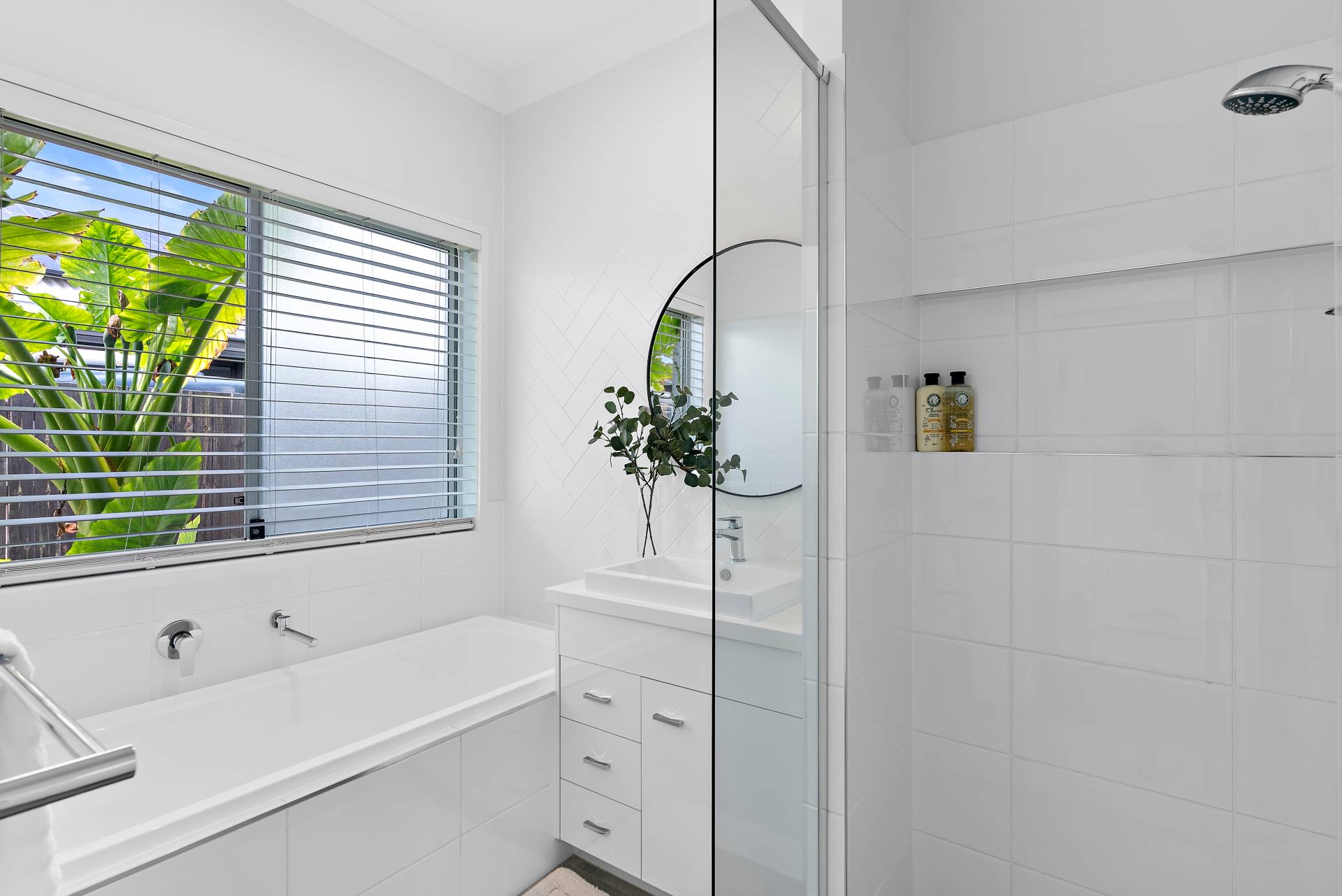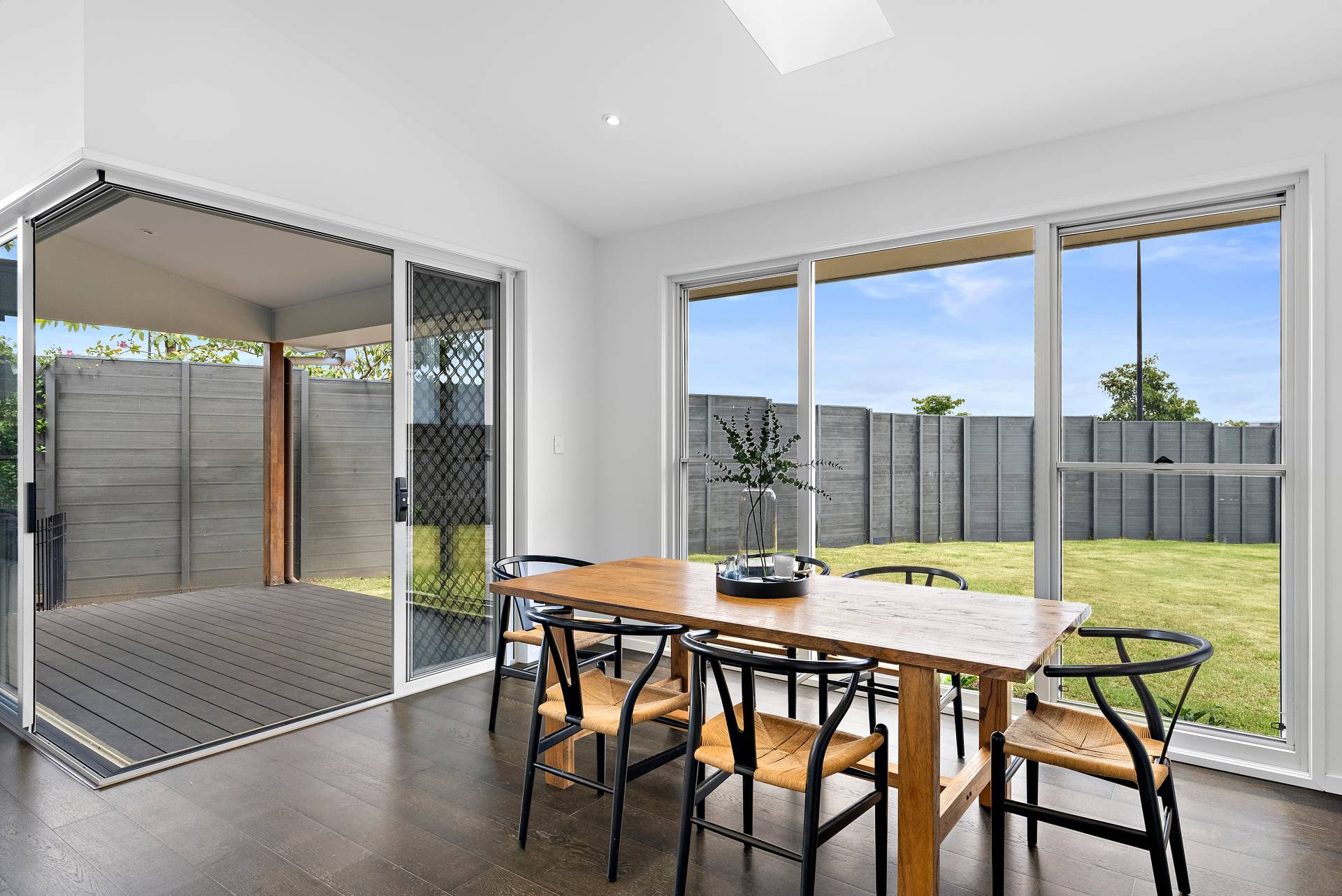 - Large feature window in main living space emphasising ceiling height and natural light as well as stunning views to your large yard and garden